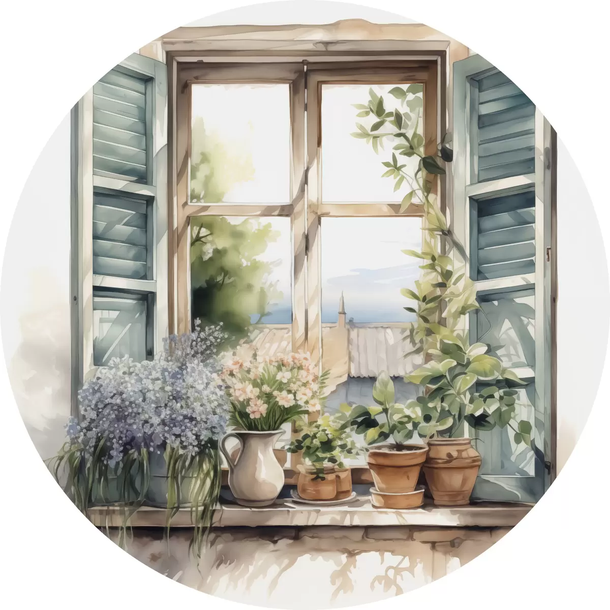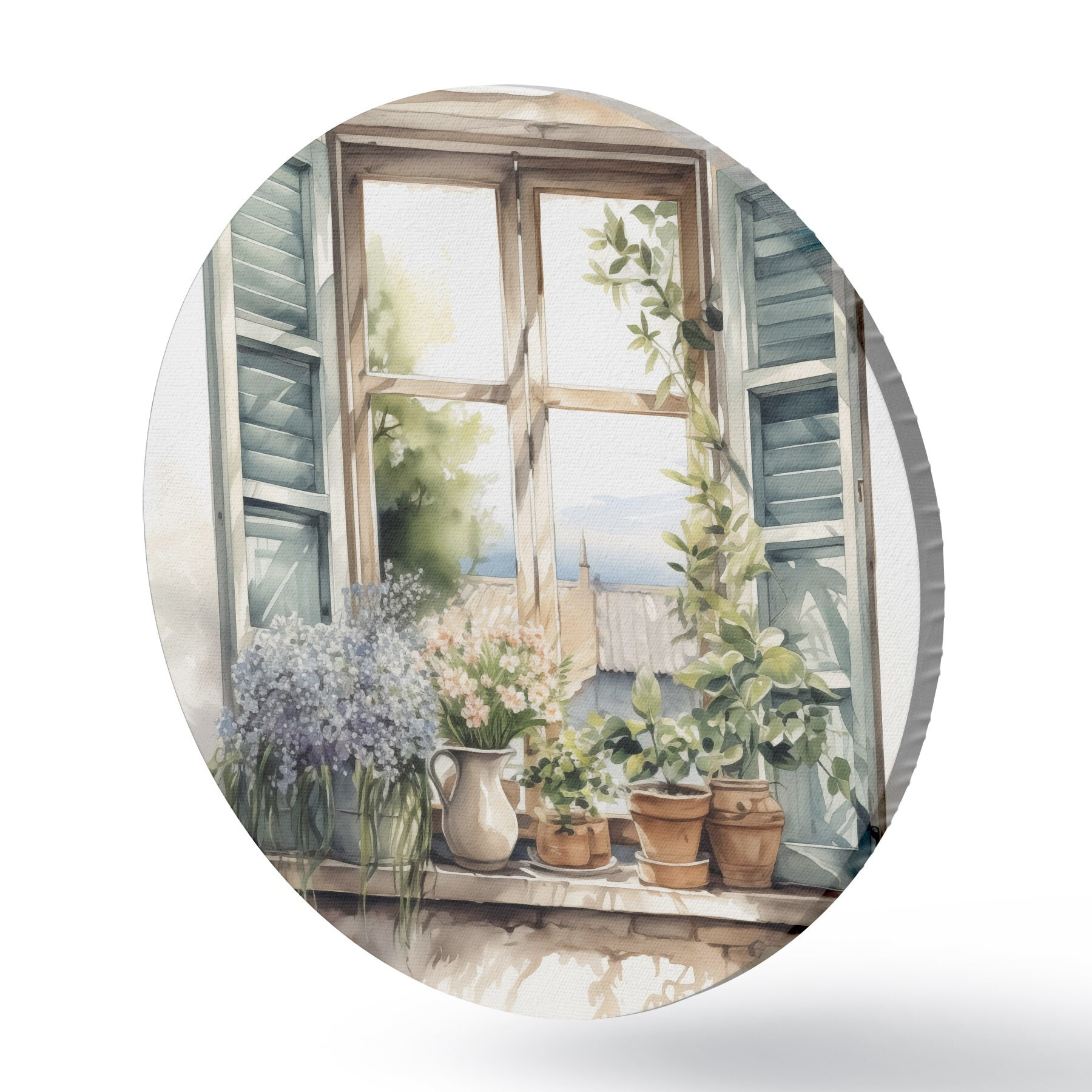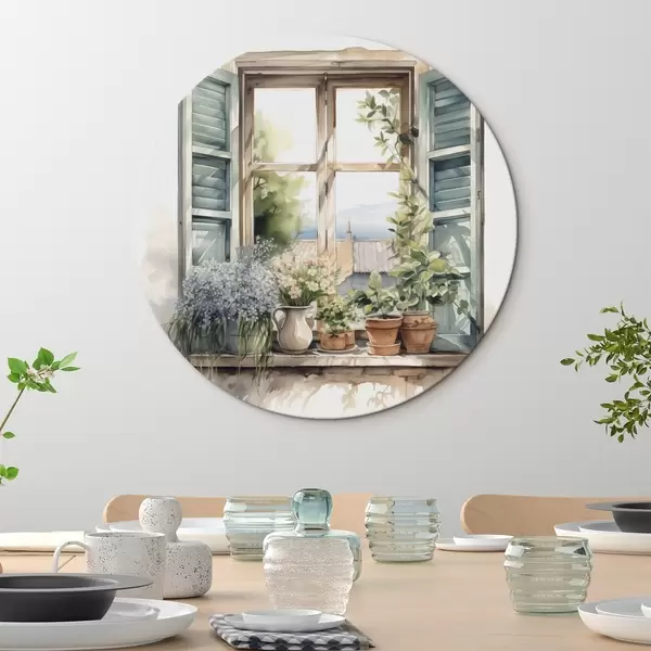 Apaļas gleznas Veģetācija uz palodzes imitācija akvarelis r42144