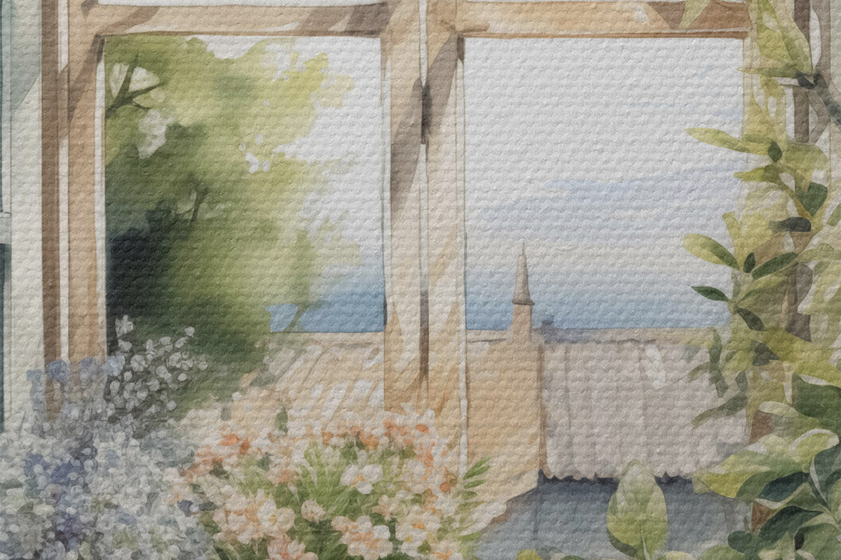 Attēls Veģetācija uz palodzes imitācija akvarelis Nr r42144