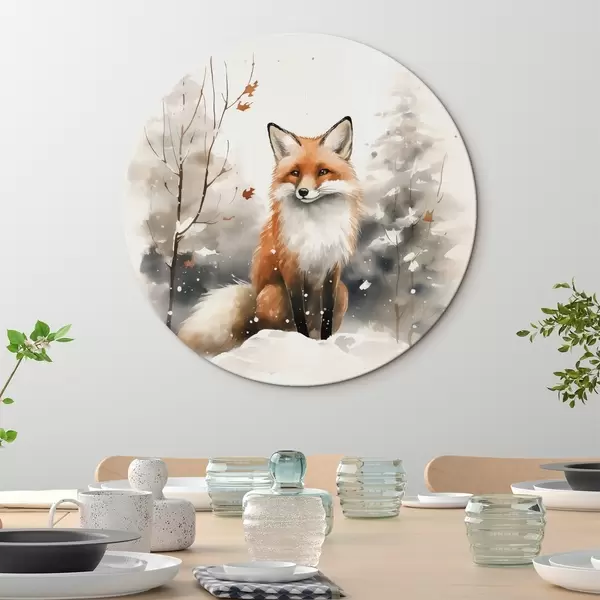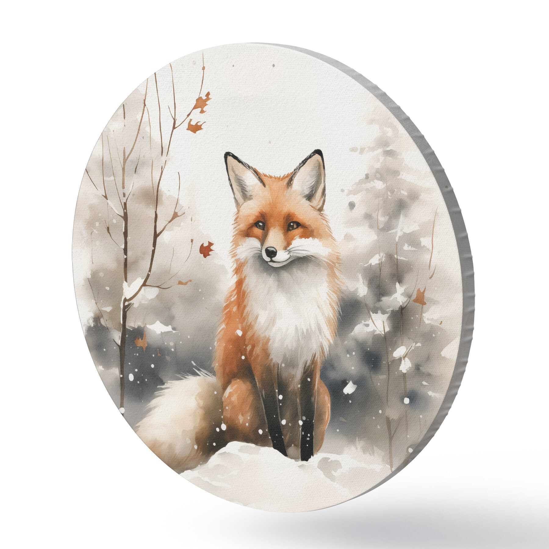 Apaļas gleznas Lapsu mazuļi sniegotā meža akvareļa imitācijā r42146