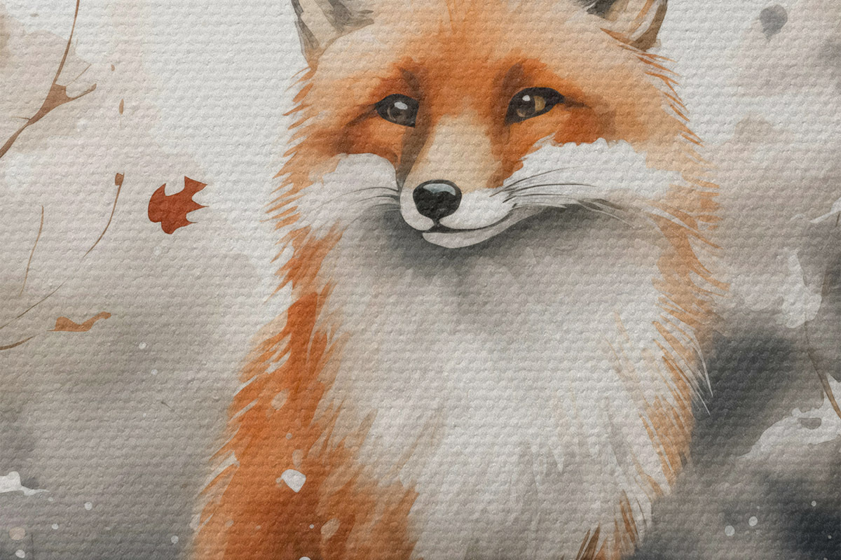 Attēls Lapsu mazuļi sniegotā meža akvareļa imitācijā Nr r42146