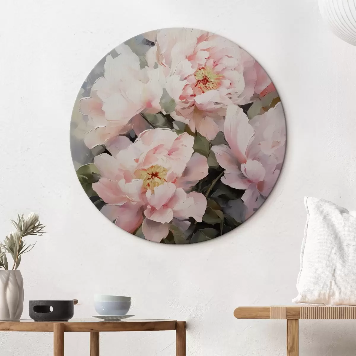 Apaļas gleznas Rozā peoniju imitācija glezniecība r42147