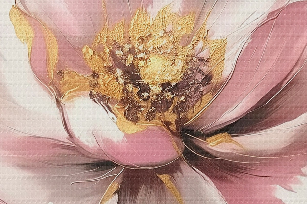 Smalkais diegu pinums uz šī audekla atgādina profesionālu mākslinieku audeklu virsmu.