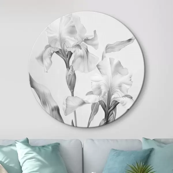 Apaļas gleznas Eleganti īrisi melnā un baltā krāsā r42171