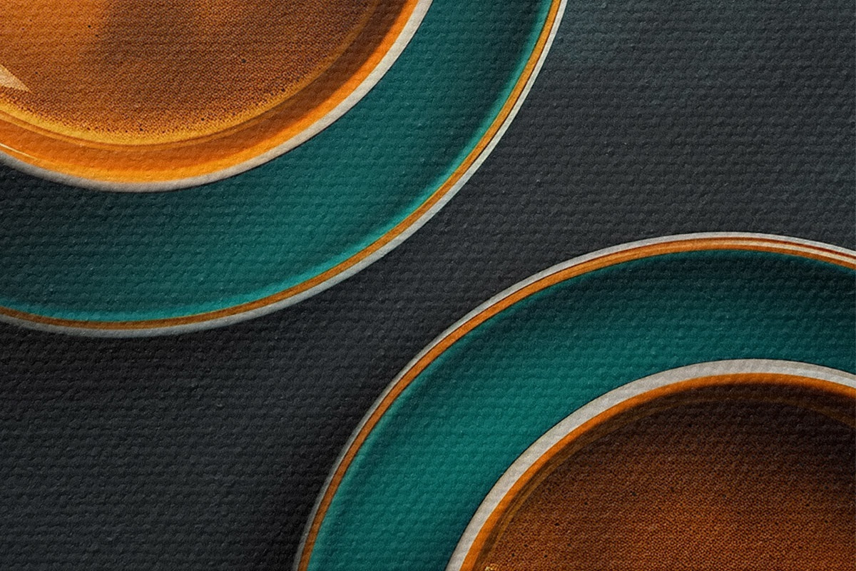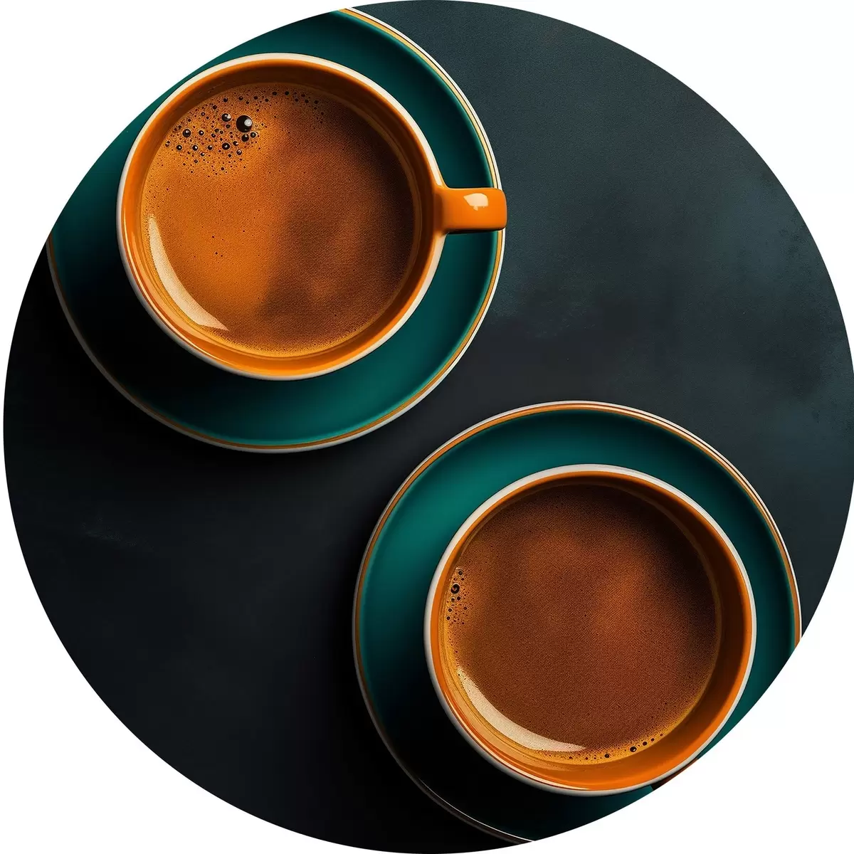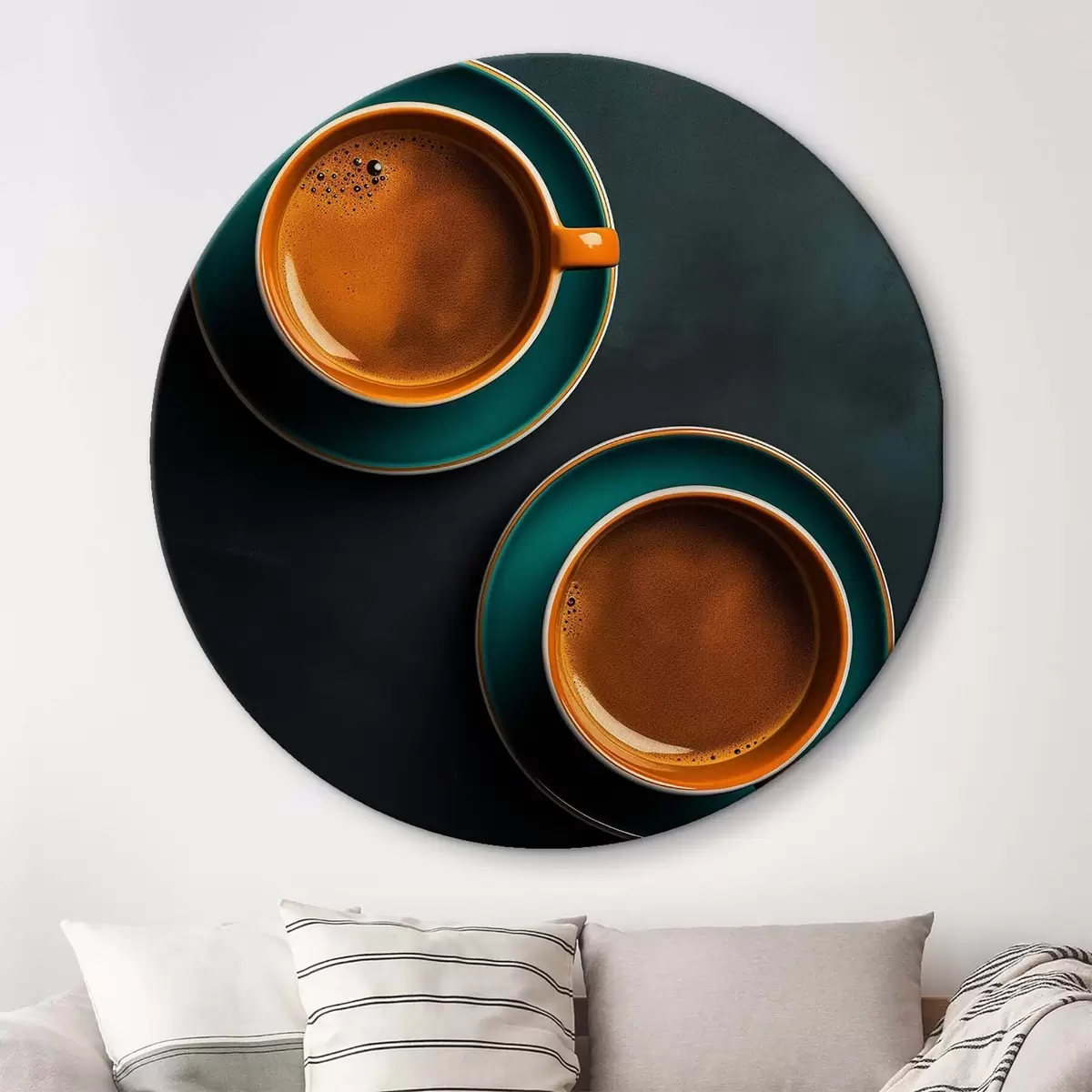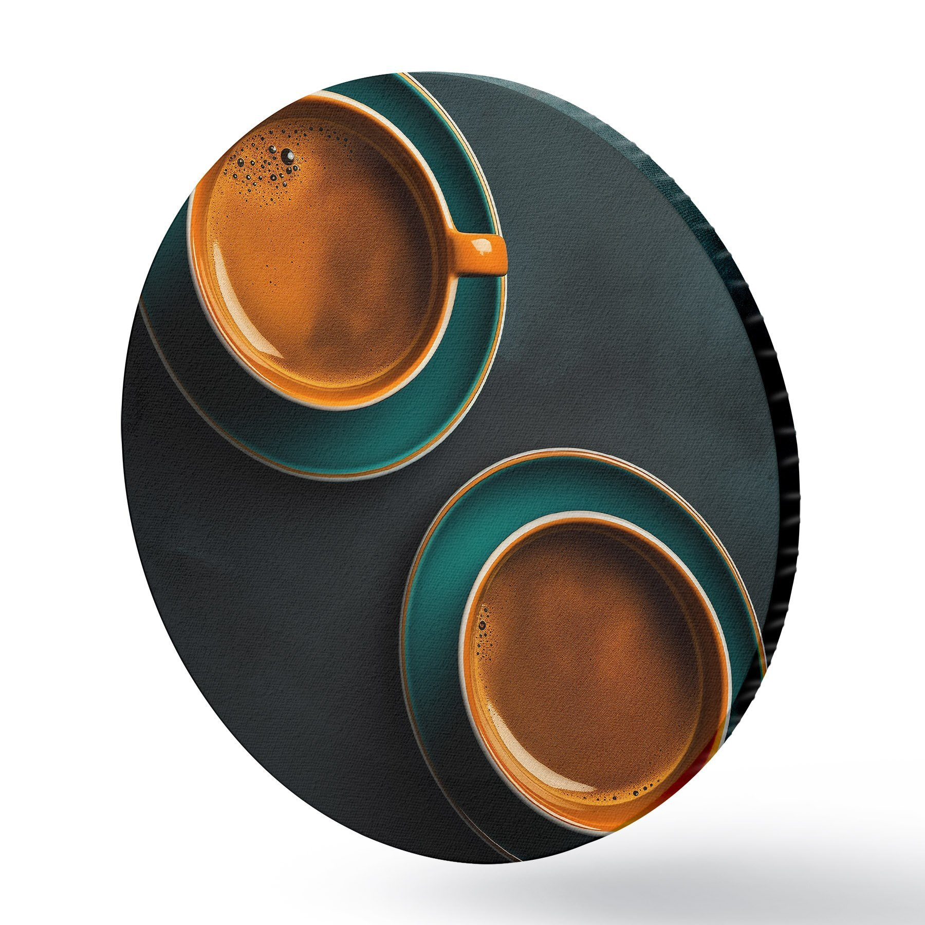 Apaļas gleznas Divas kafijas tasītes uz tumša fona r42190
