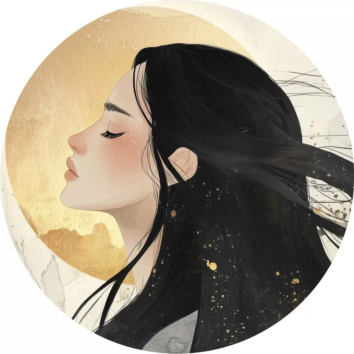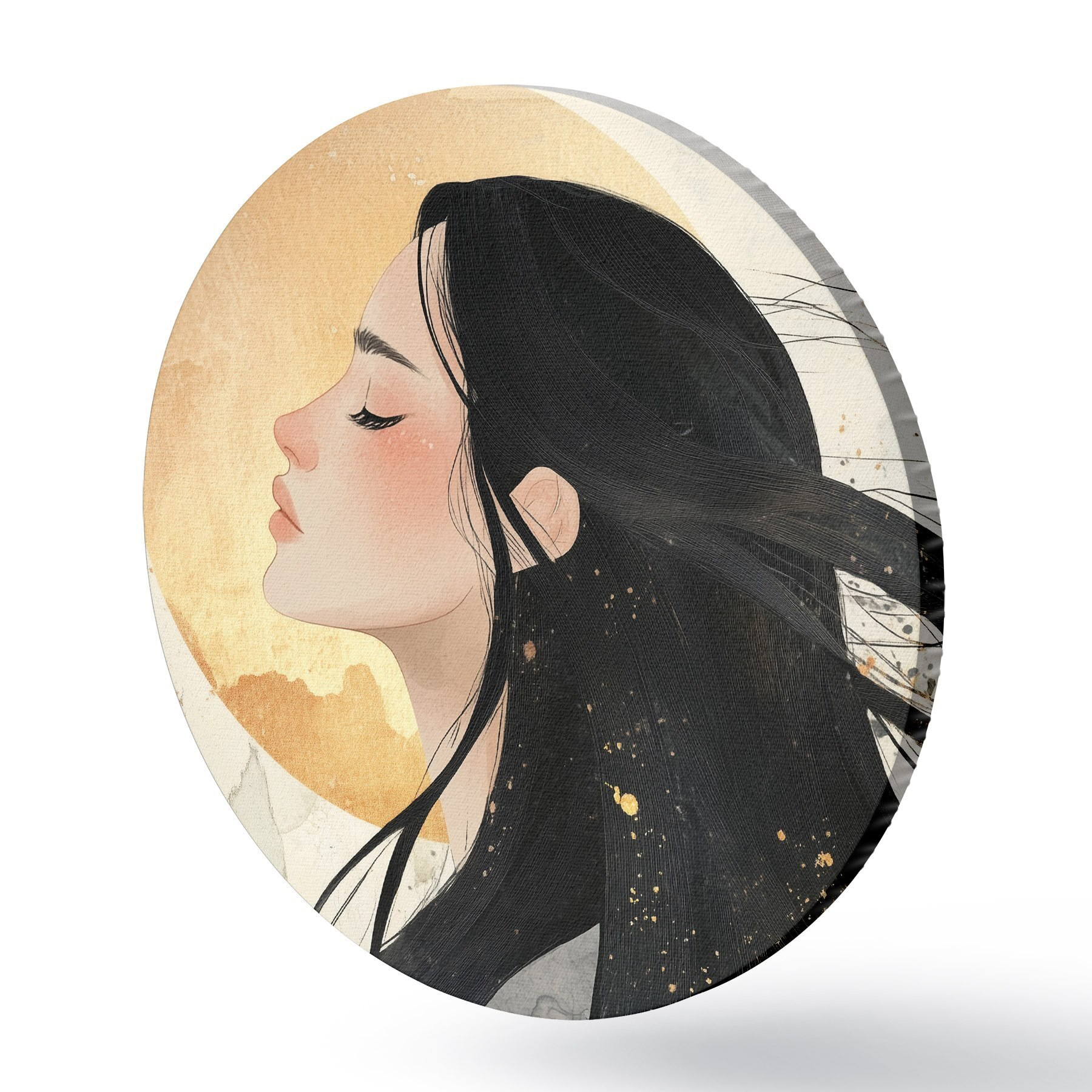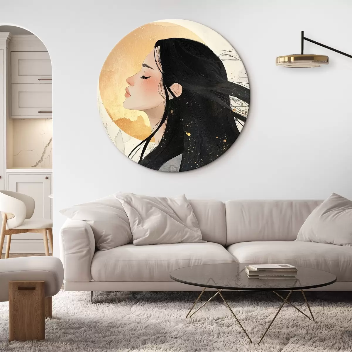 Apaļas gleznas Skaista meitene ar tumšiem matiem, austrumu stilā, saule r42194