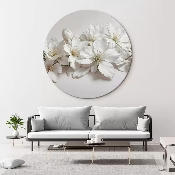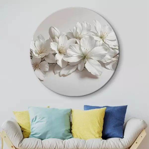 Apaļas gleznas Balti maigi magnolijas ziedi uz gaiša fona r42230