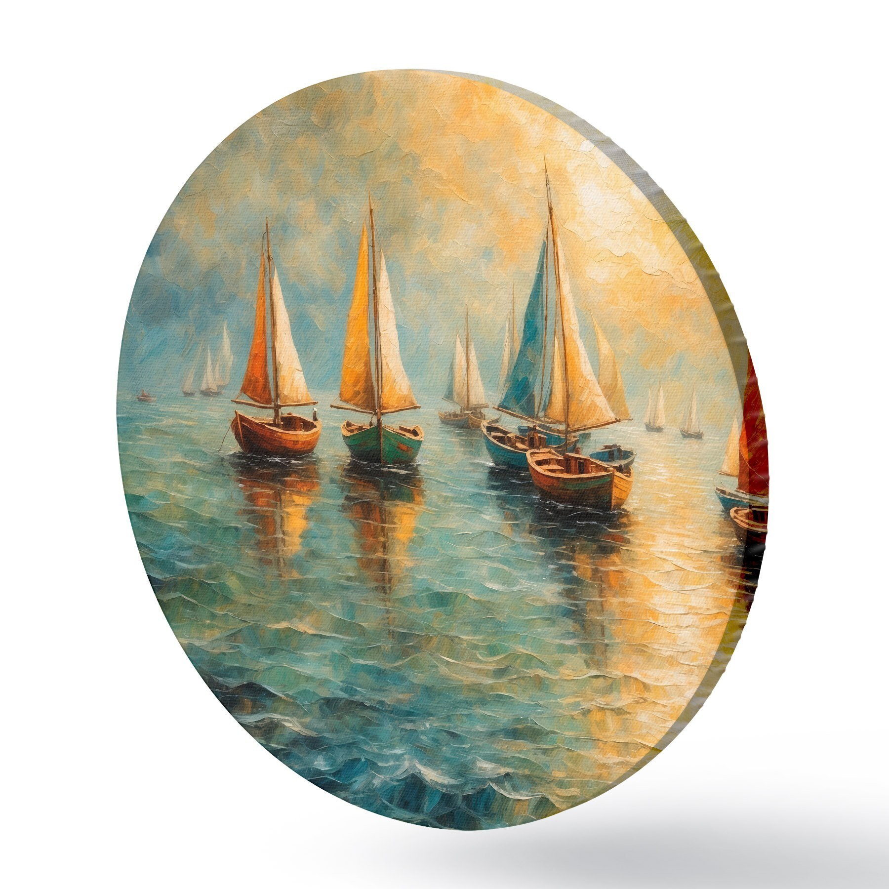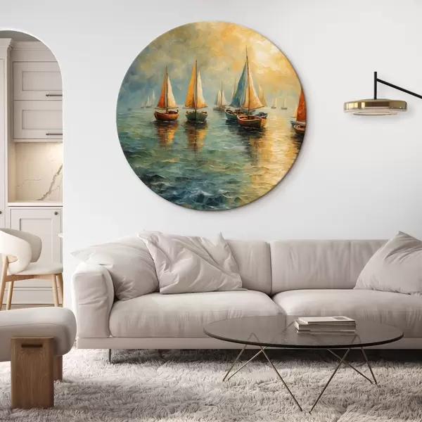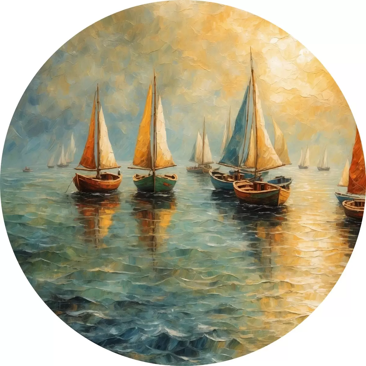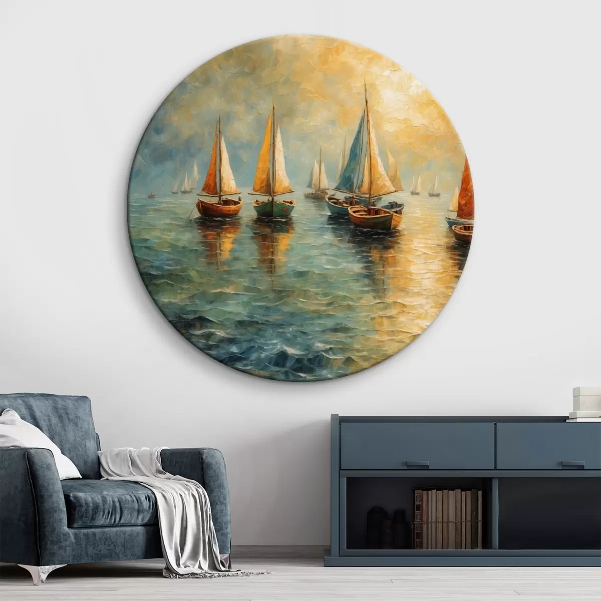 Apaļas gleznas Kuģi kuģo saulrieta virzienā r42251