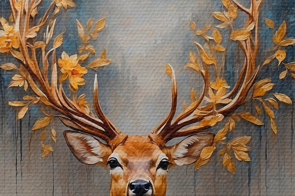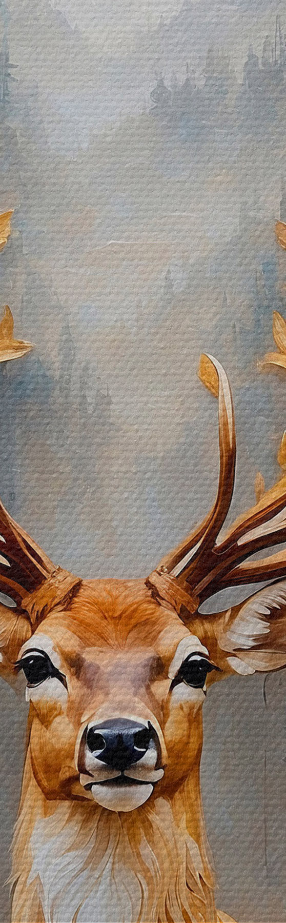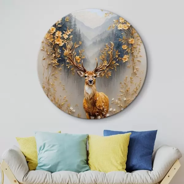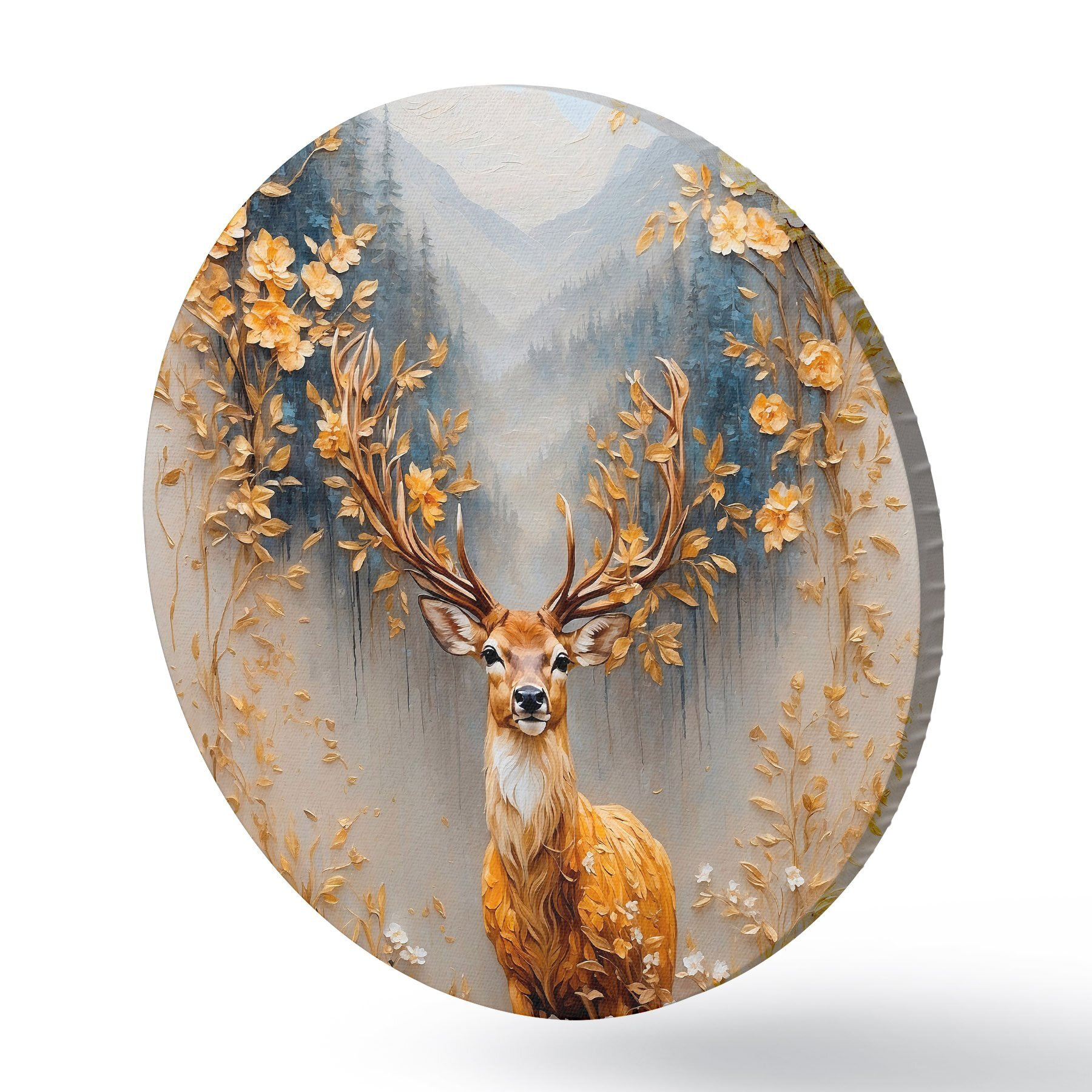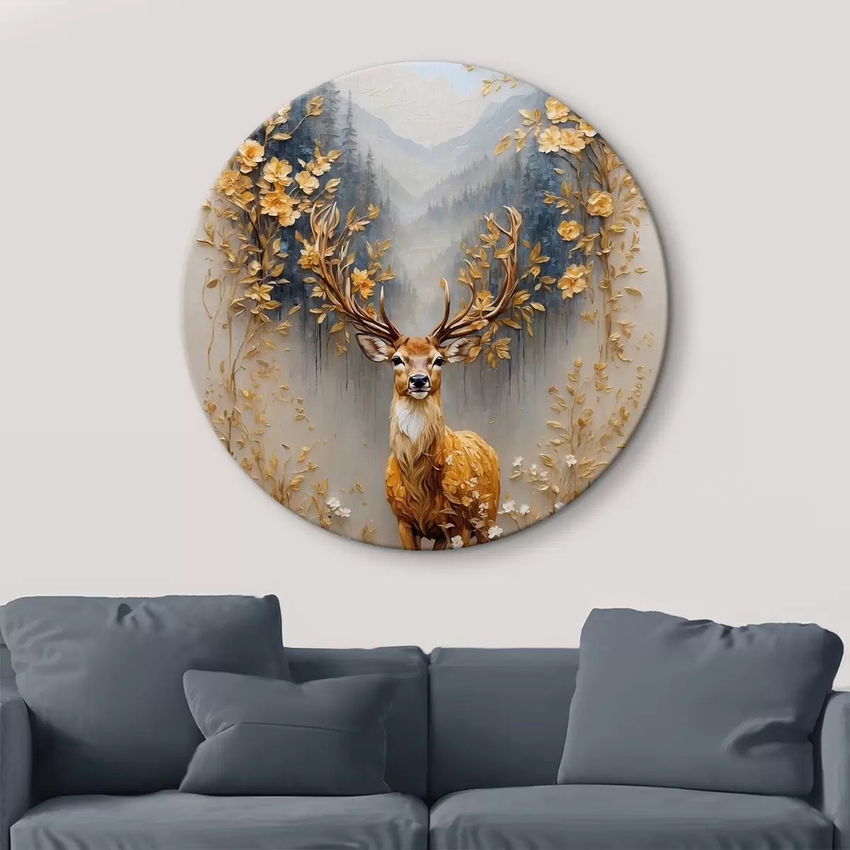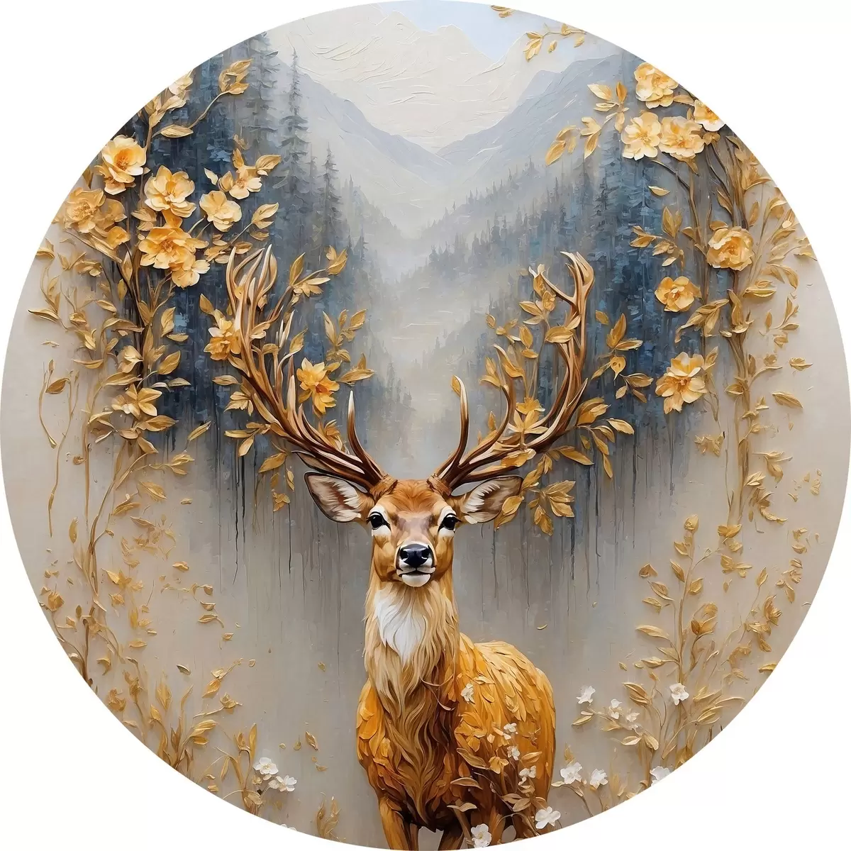Apaļas gleznas Briedis ar lieliem ragiem uz meža fona r42252