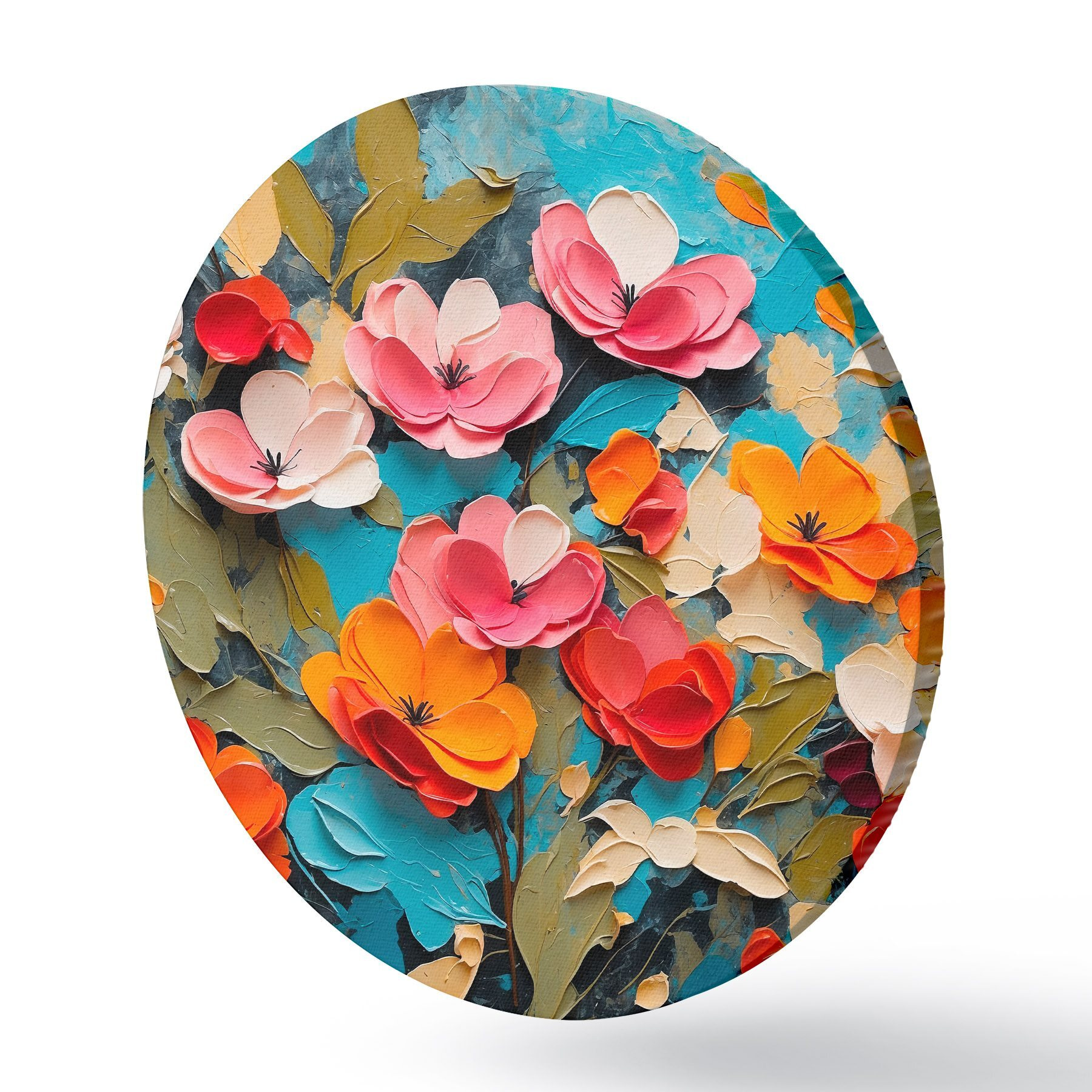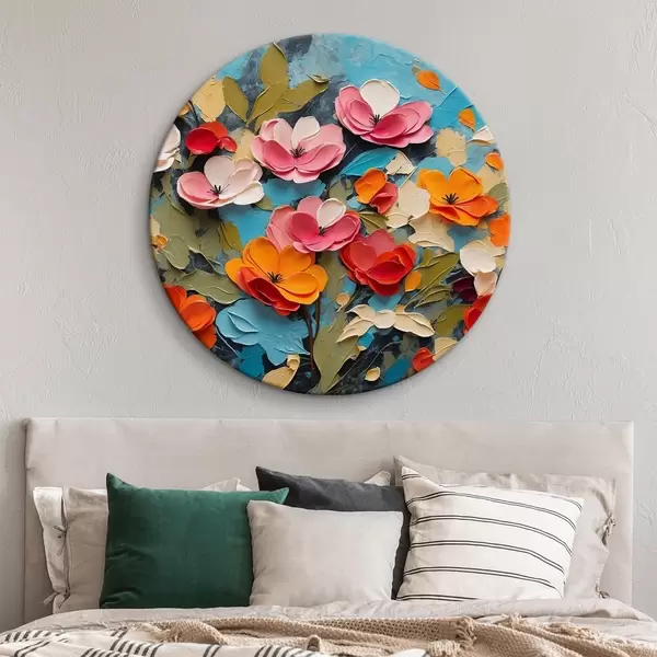 Apaļas gleznas Ziedi un lapas uz zila fona r42255