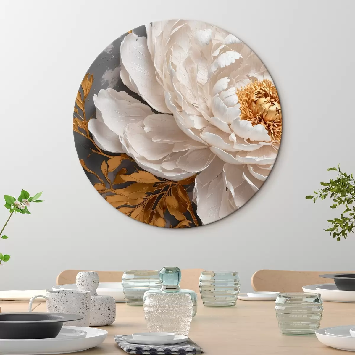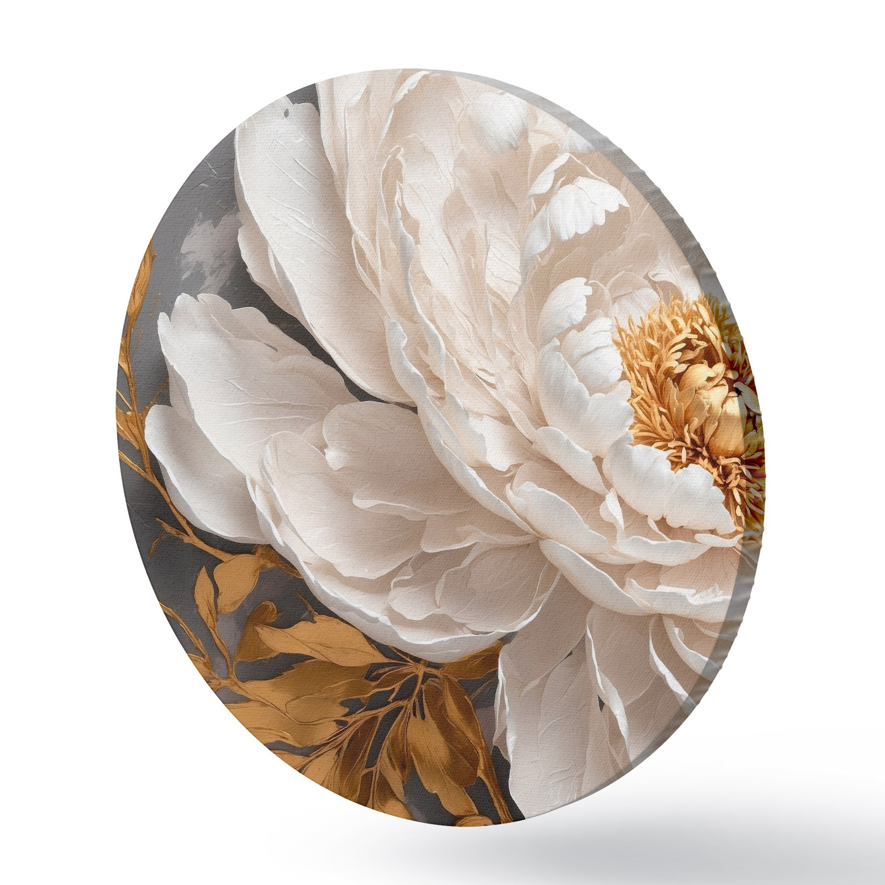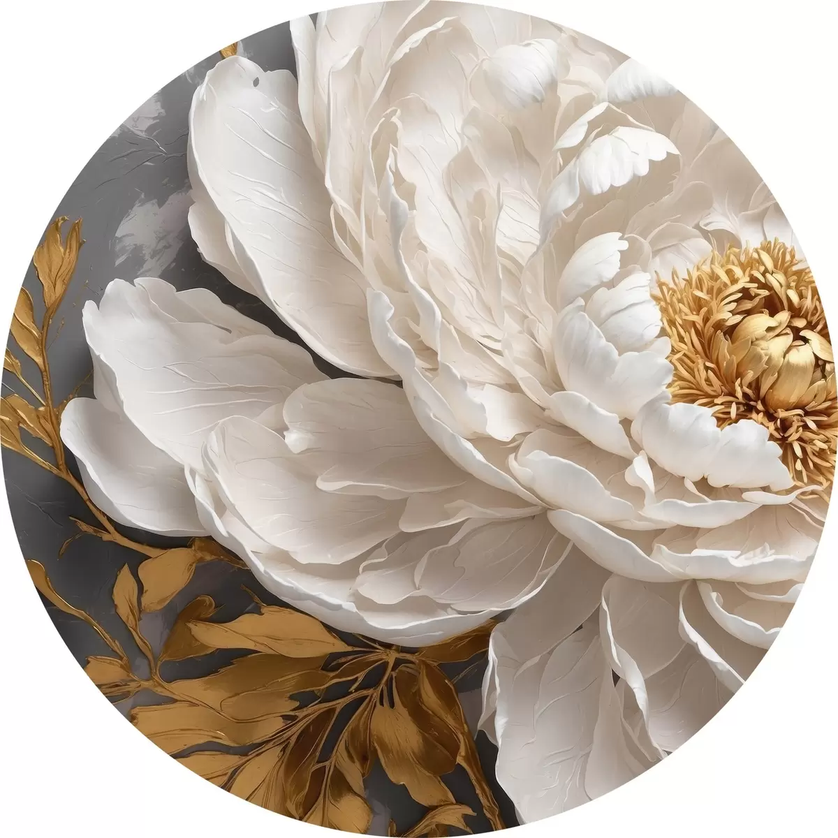 Apaļas gleznas Balta peonija uz pelēka fona r42260
