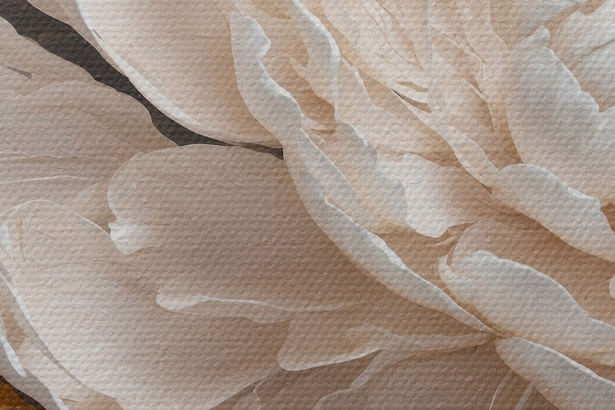 Smalkais diegu pinums uz šī audekla atgādina profesionālu mākslinieku audeklu virsmu.
