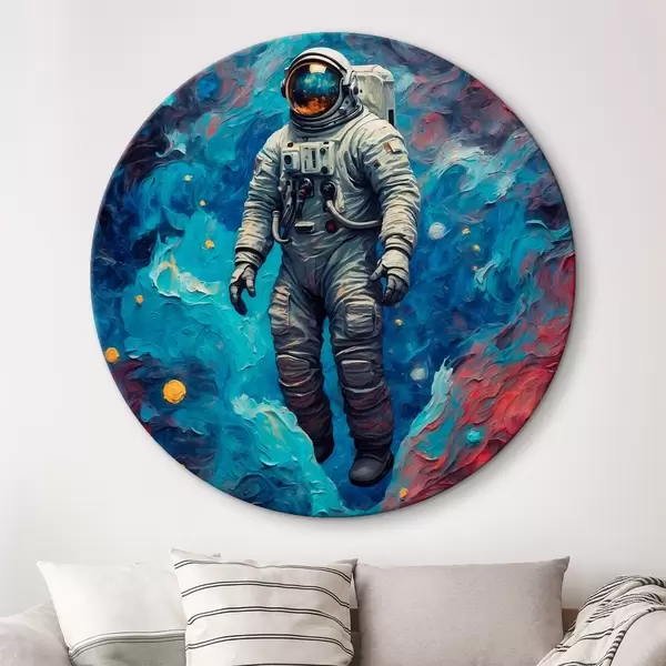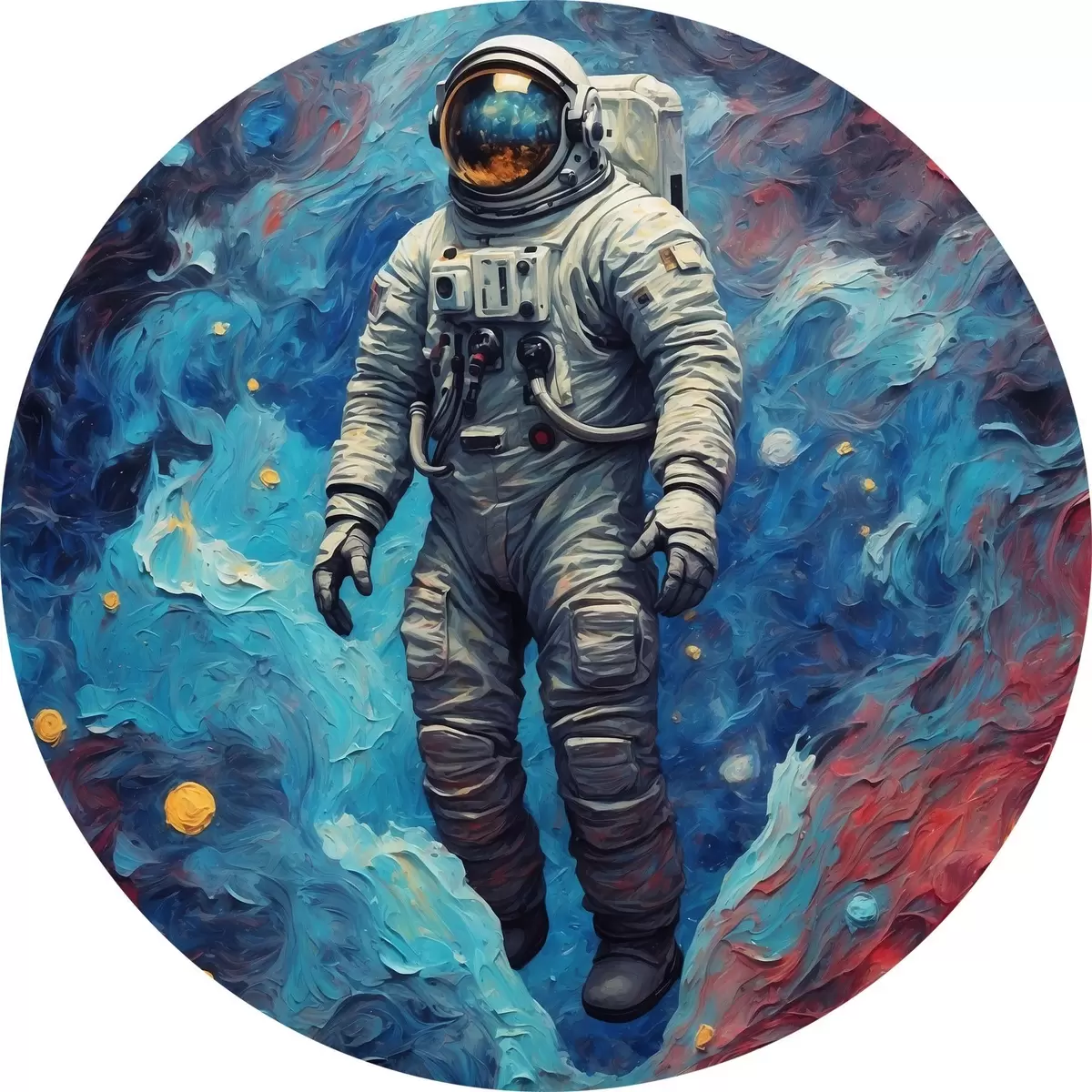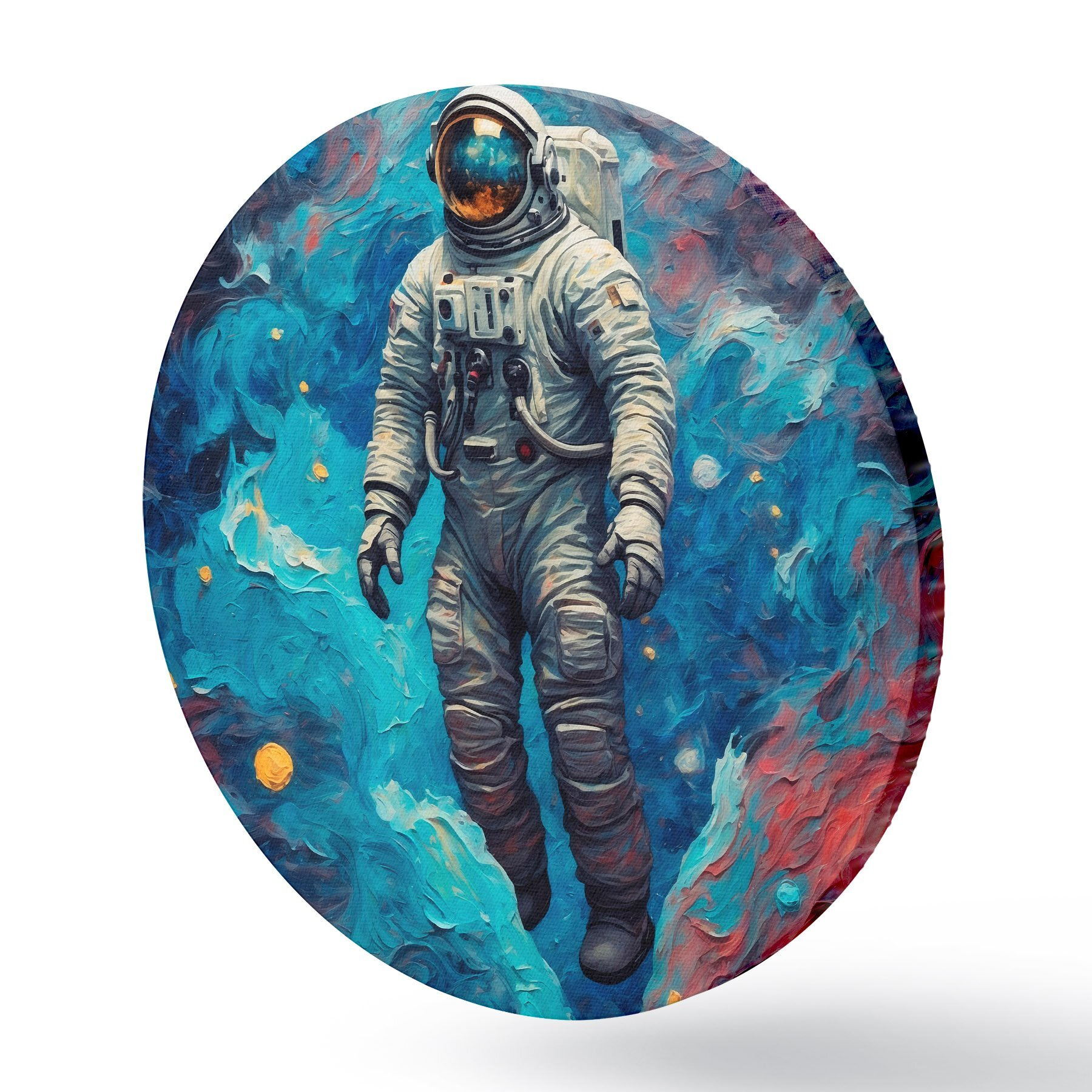 Apaļas gleznas Astronauts uz abstrakta kosmosa fona eļļas glezniecības stilā r42265