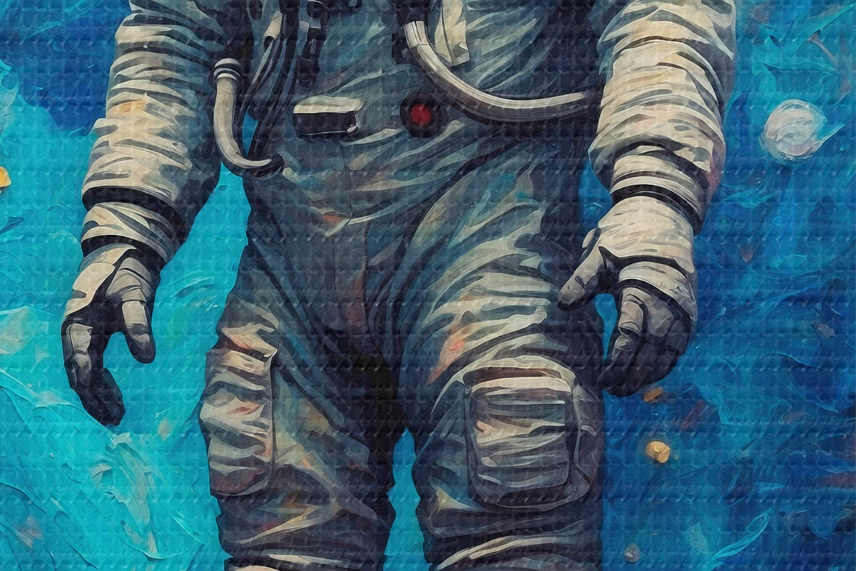 Attēls Astronauts uz abstrakta kosmosa fona eļļas glezniecības stilā Nr r42265