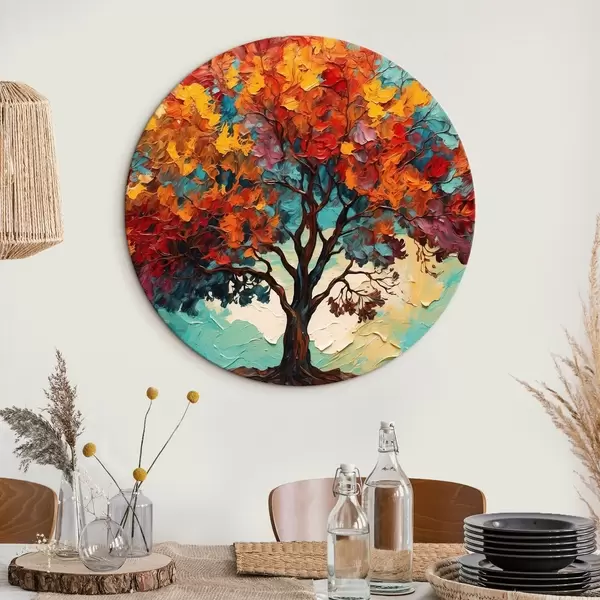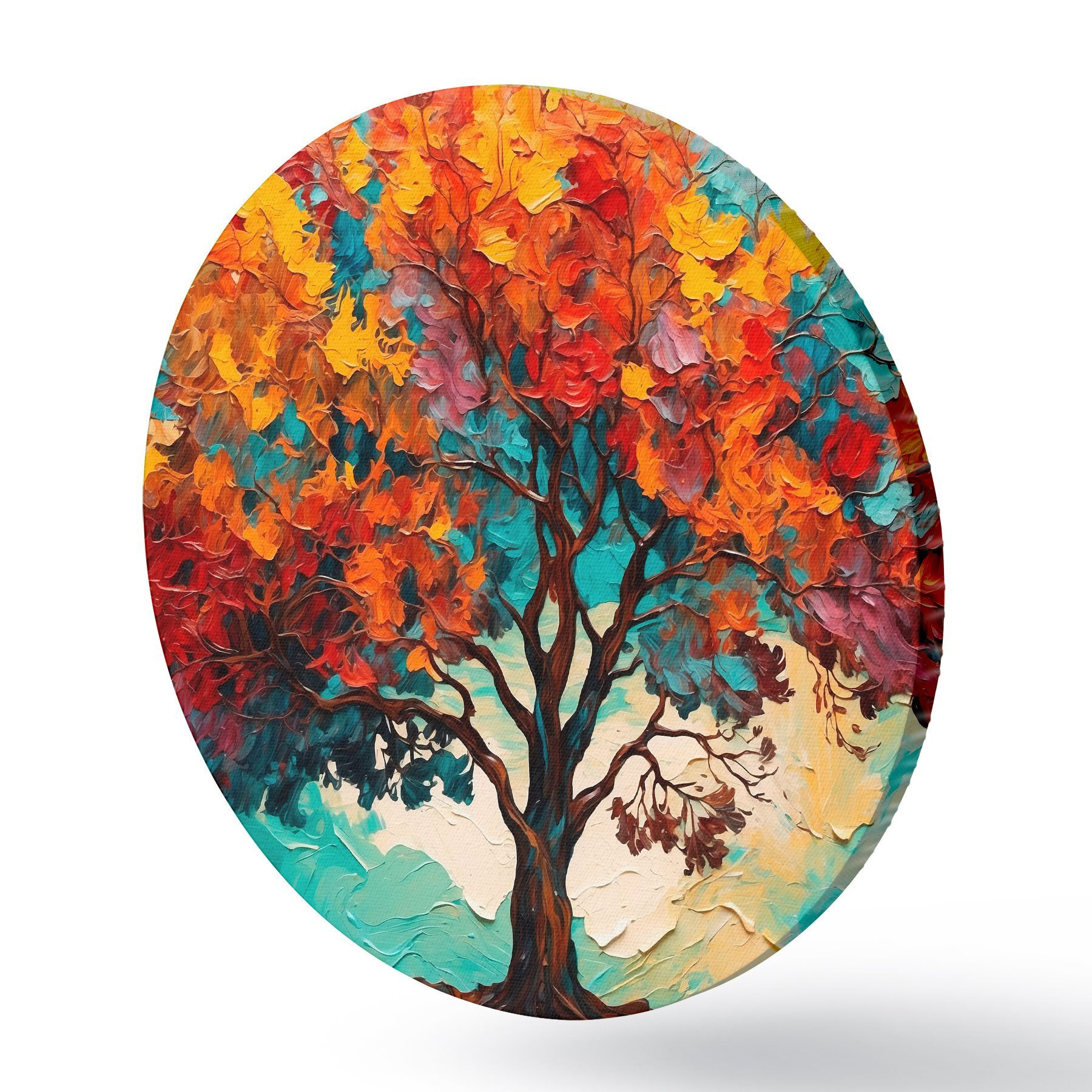 Apaļas gleznas Koks uz oranži zila fona eļļas gleznošanas stilā r42267