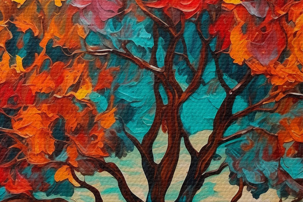 Attēls Koks uz oranži zila fona eļļas gleznošanas stilā Nr r42267