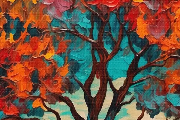 Attēls Koks uz oranži zila fona eļļas gleznošanas stilā Nr r42267