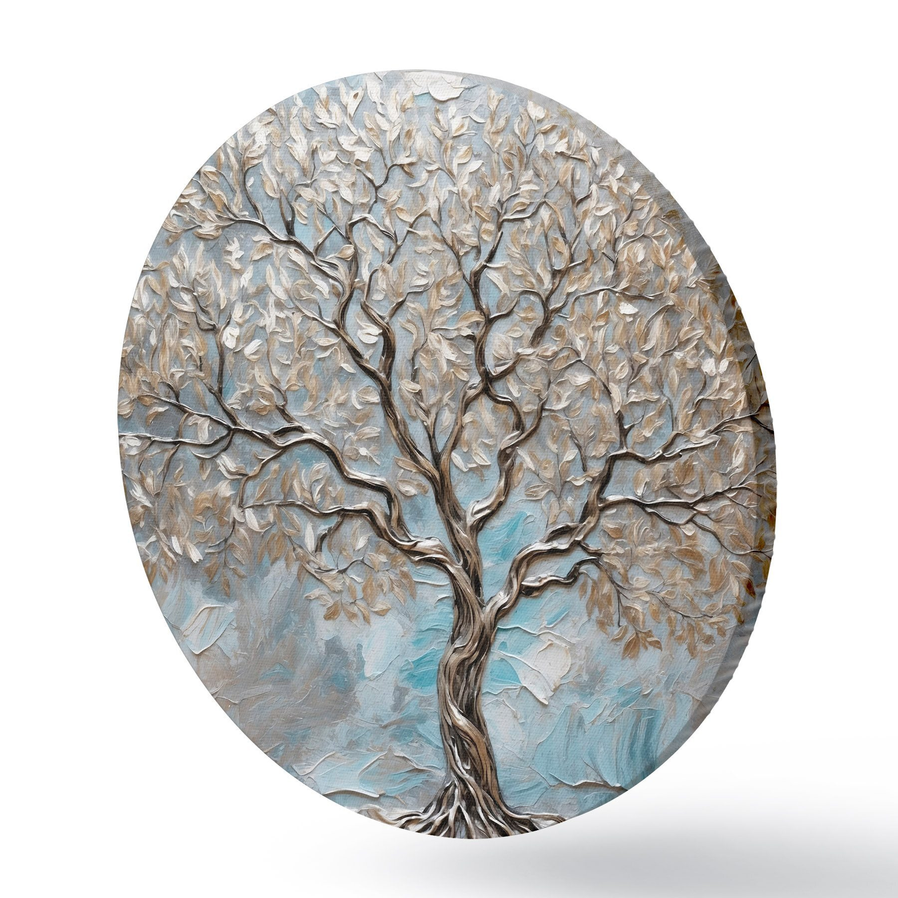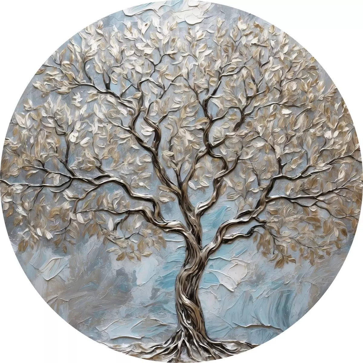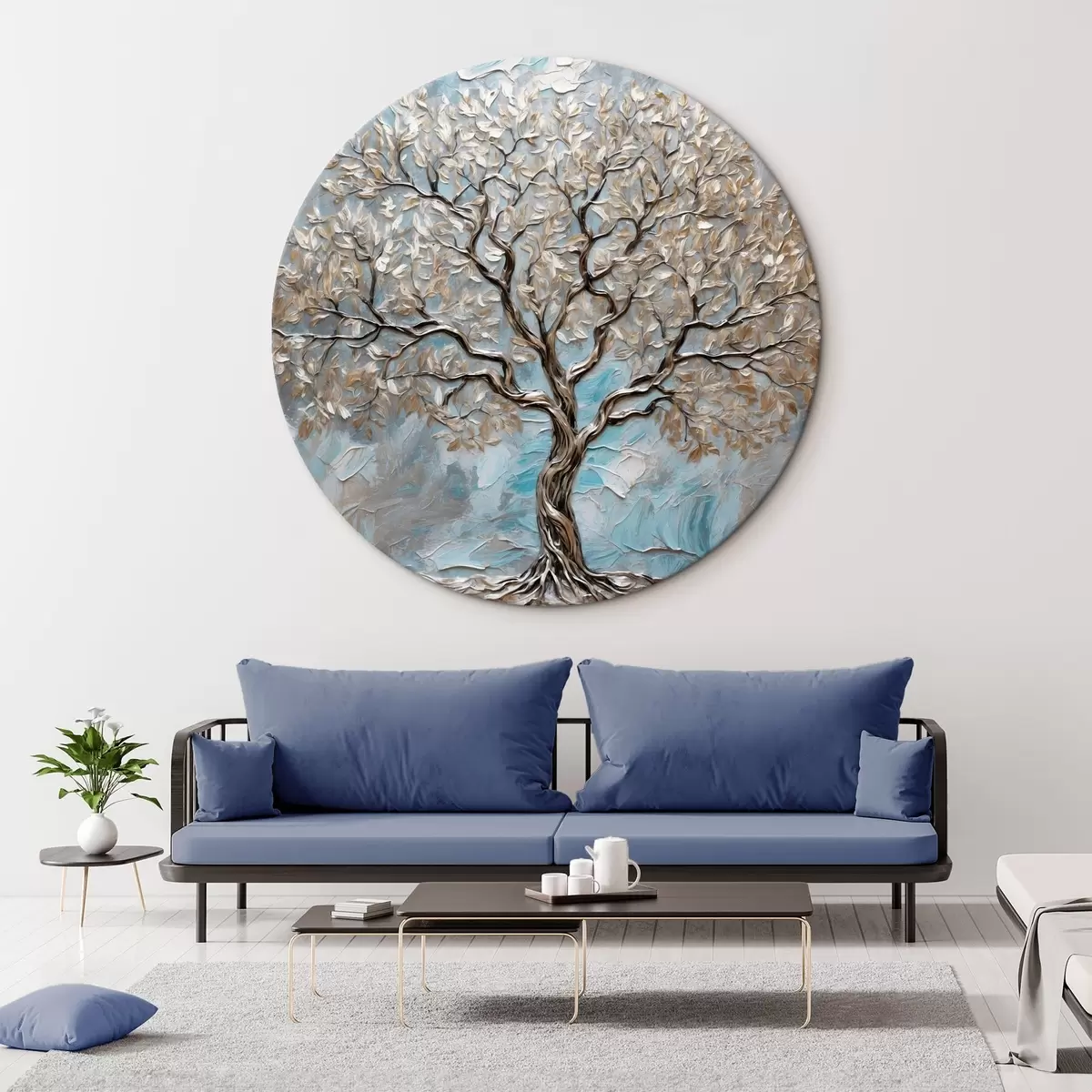 Apaļas gleznas Sudraba koks uz zili pelēka fona r42273