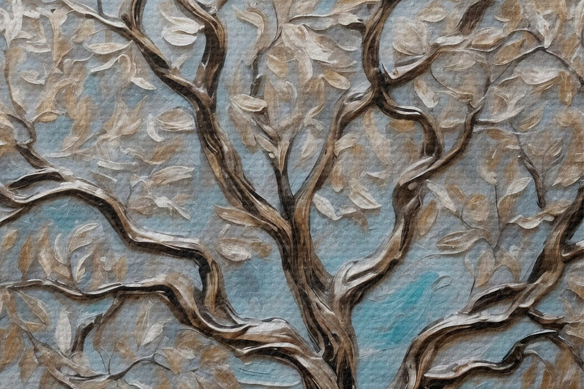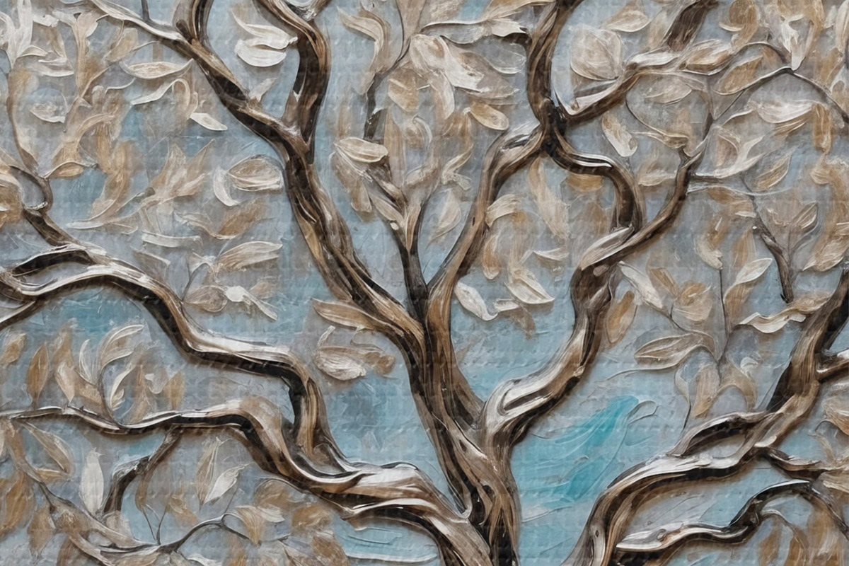 Attēls Sudraba koks uz zili pelēka fona Nr r42273