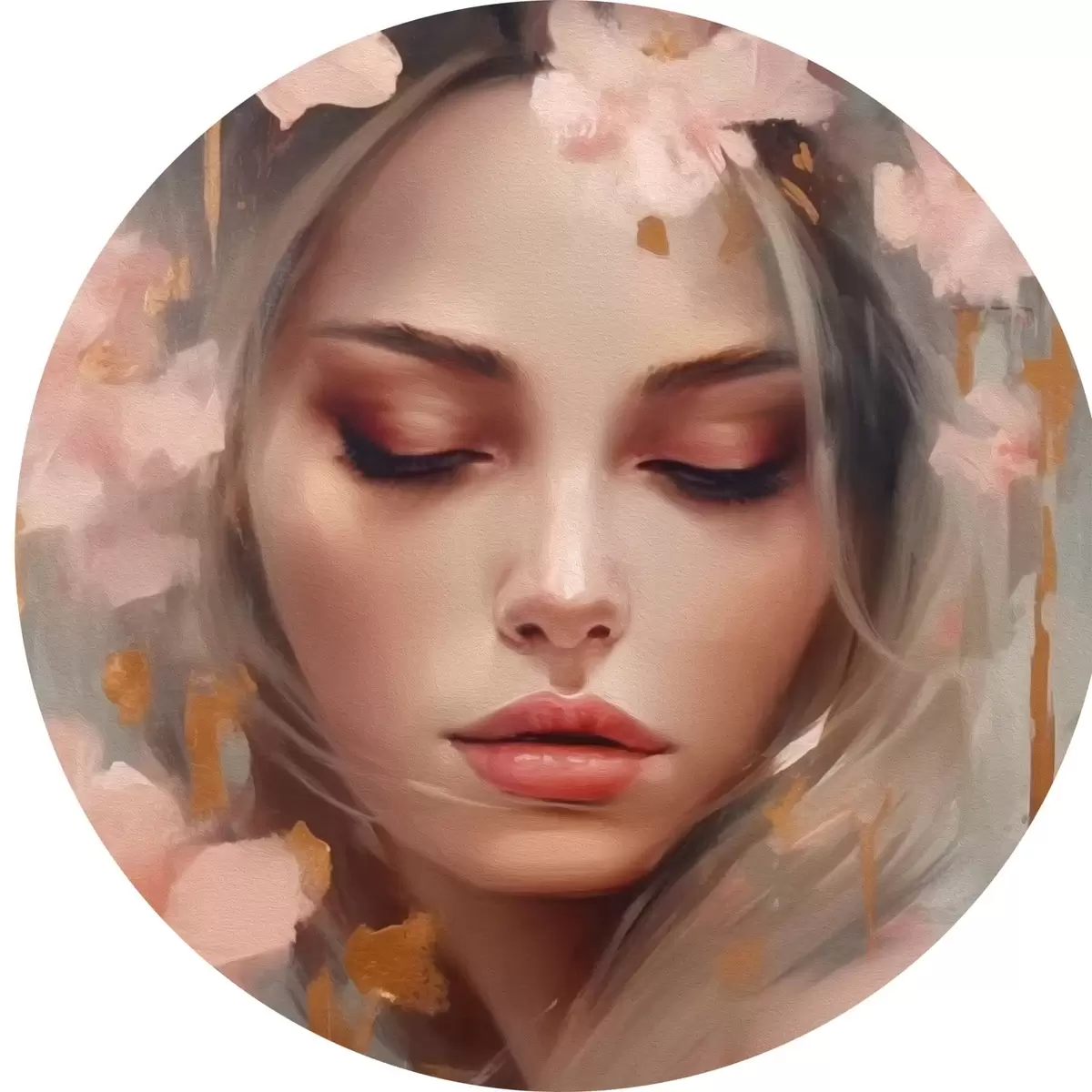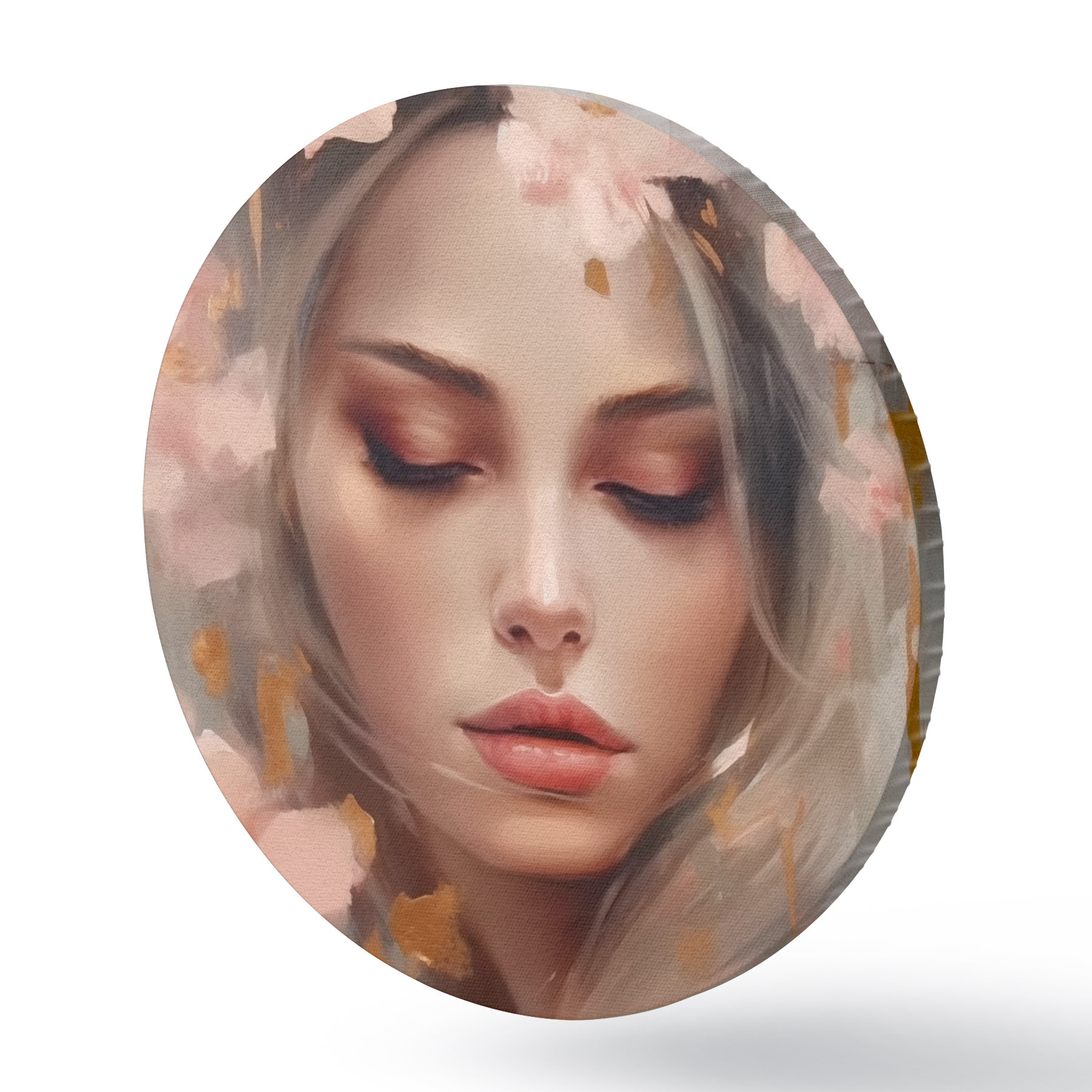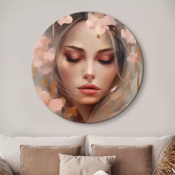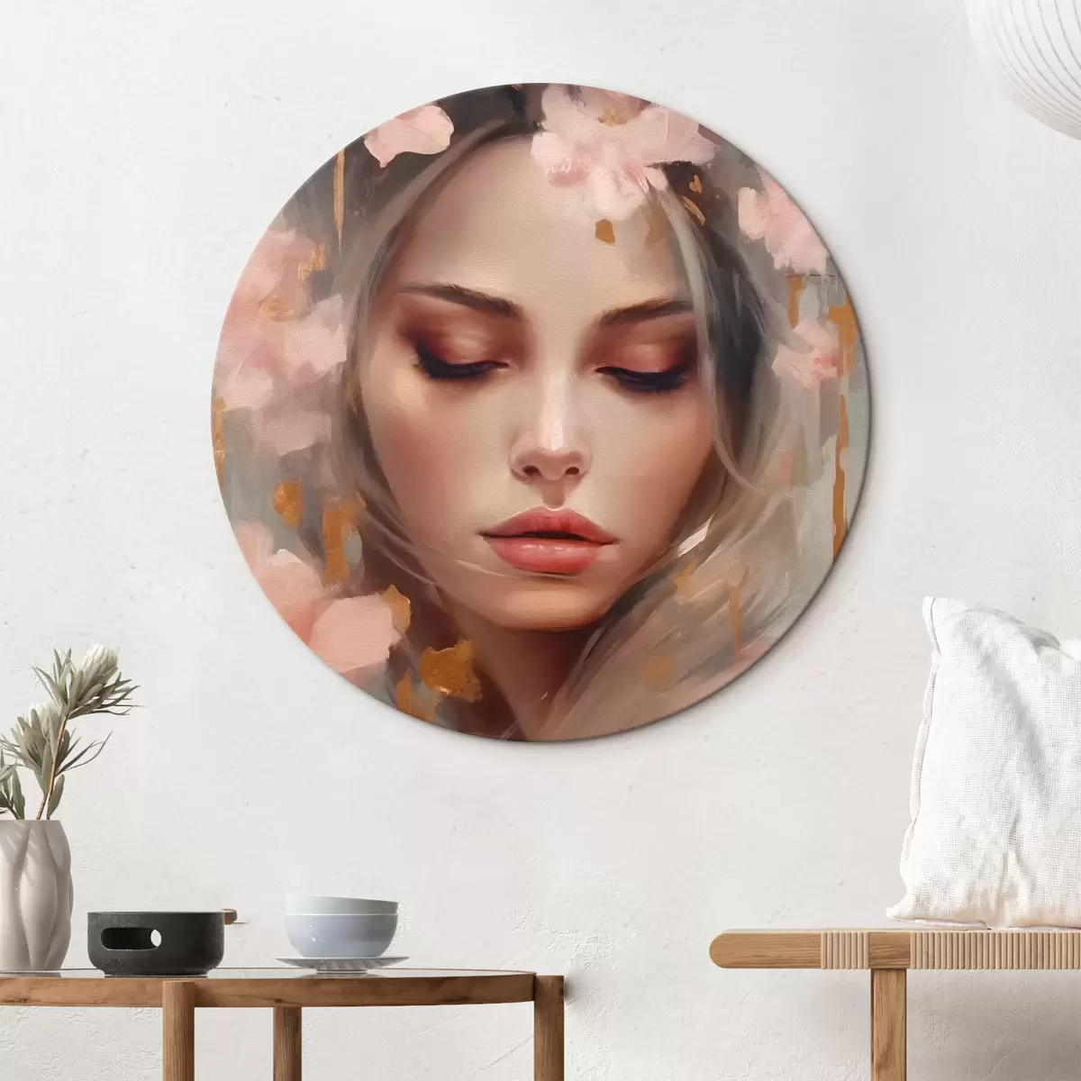 Apaļas gleznas Skaista meitene un ziedi r42299