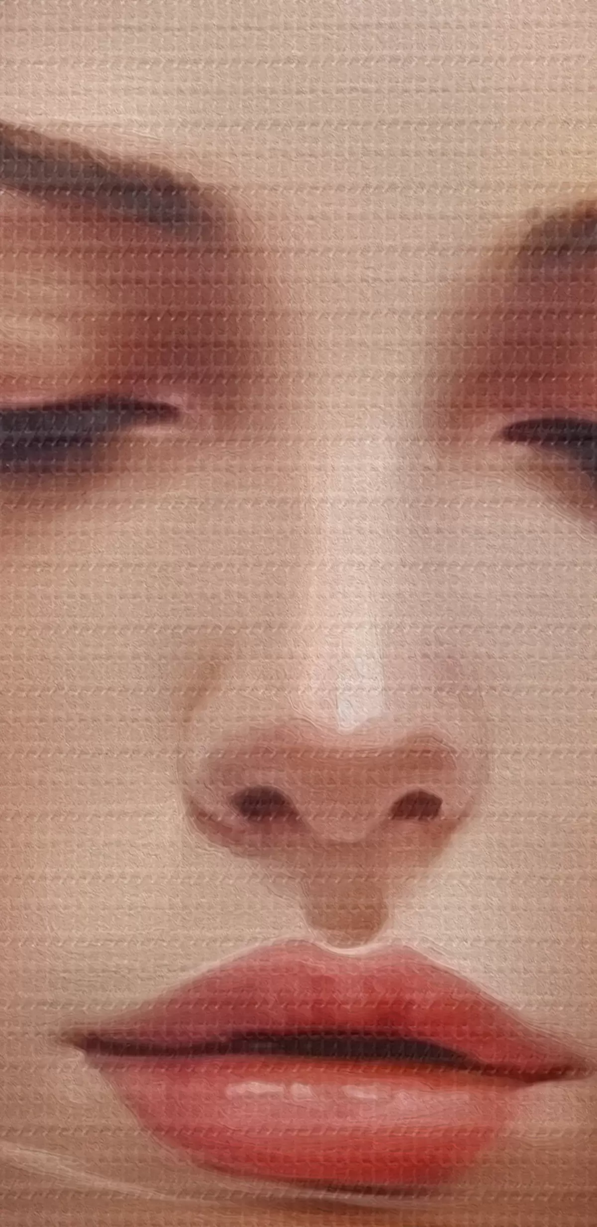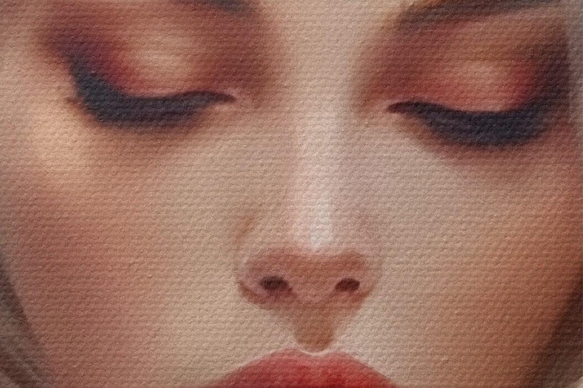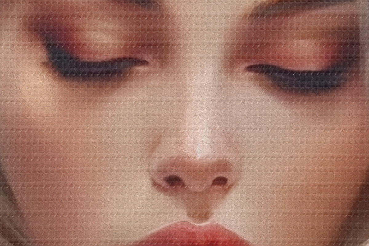 Smalkais diegu pinums uz šī audekla atgādina profesionālu mākslinieku audeklu virsmu.