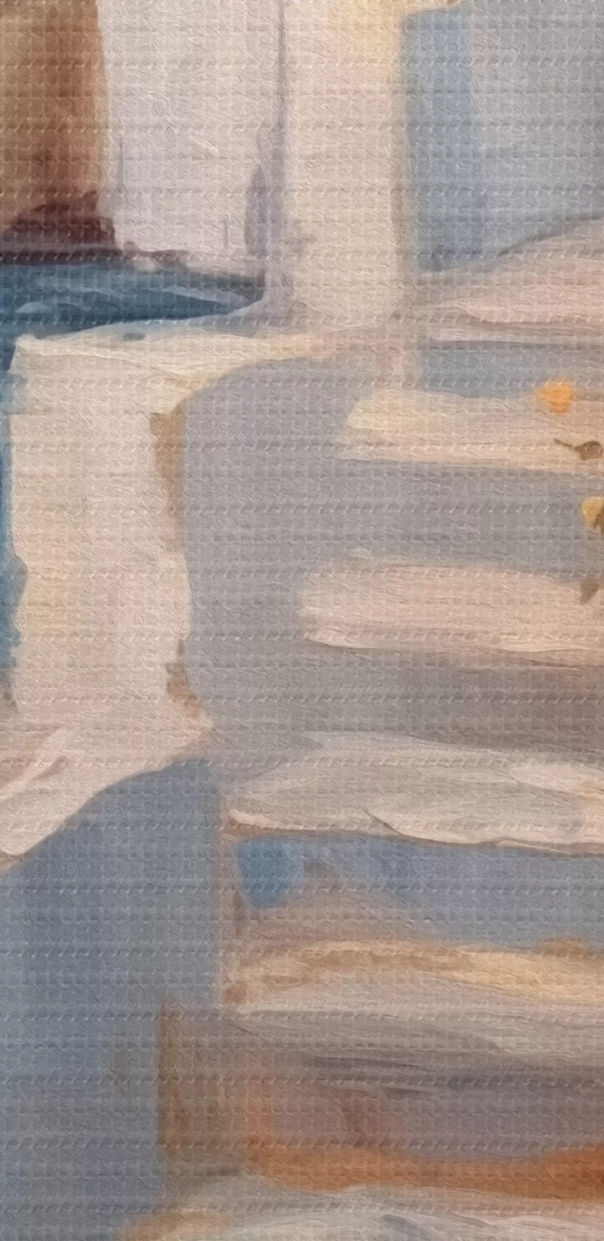 Smalkais diegu pinums uz šī audekla atgādina profesionālu mākslinieku audeklu virsmu.