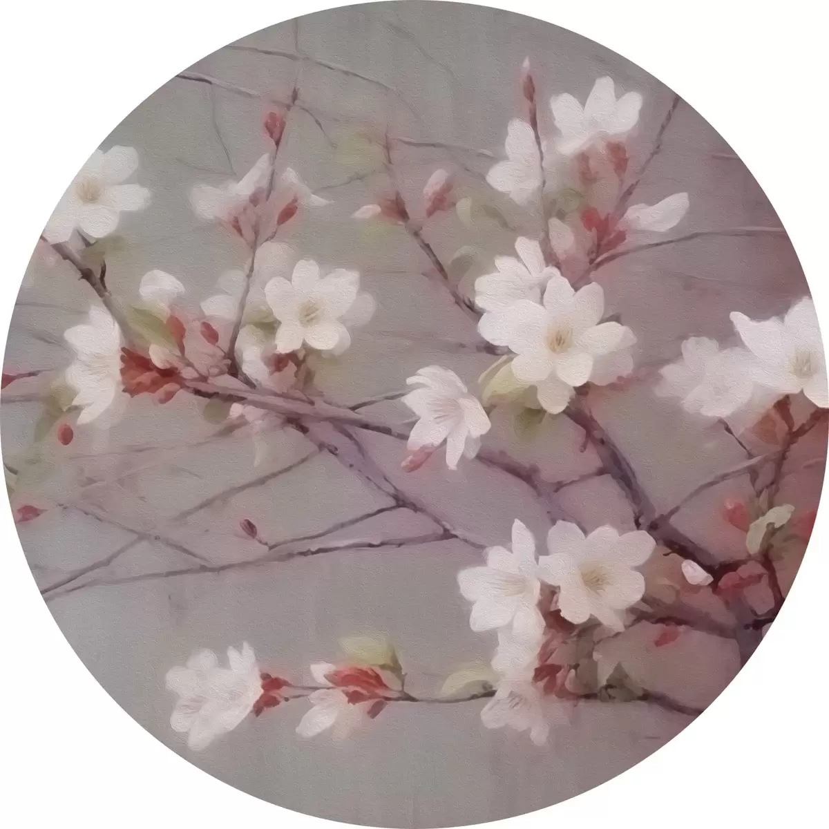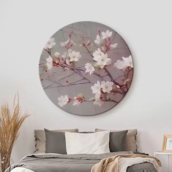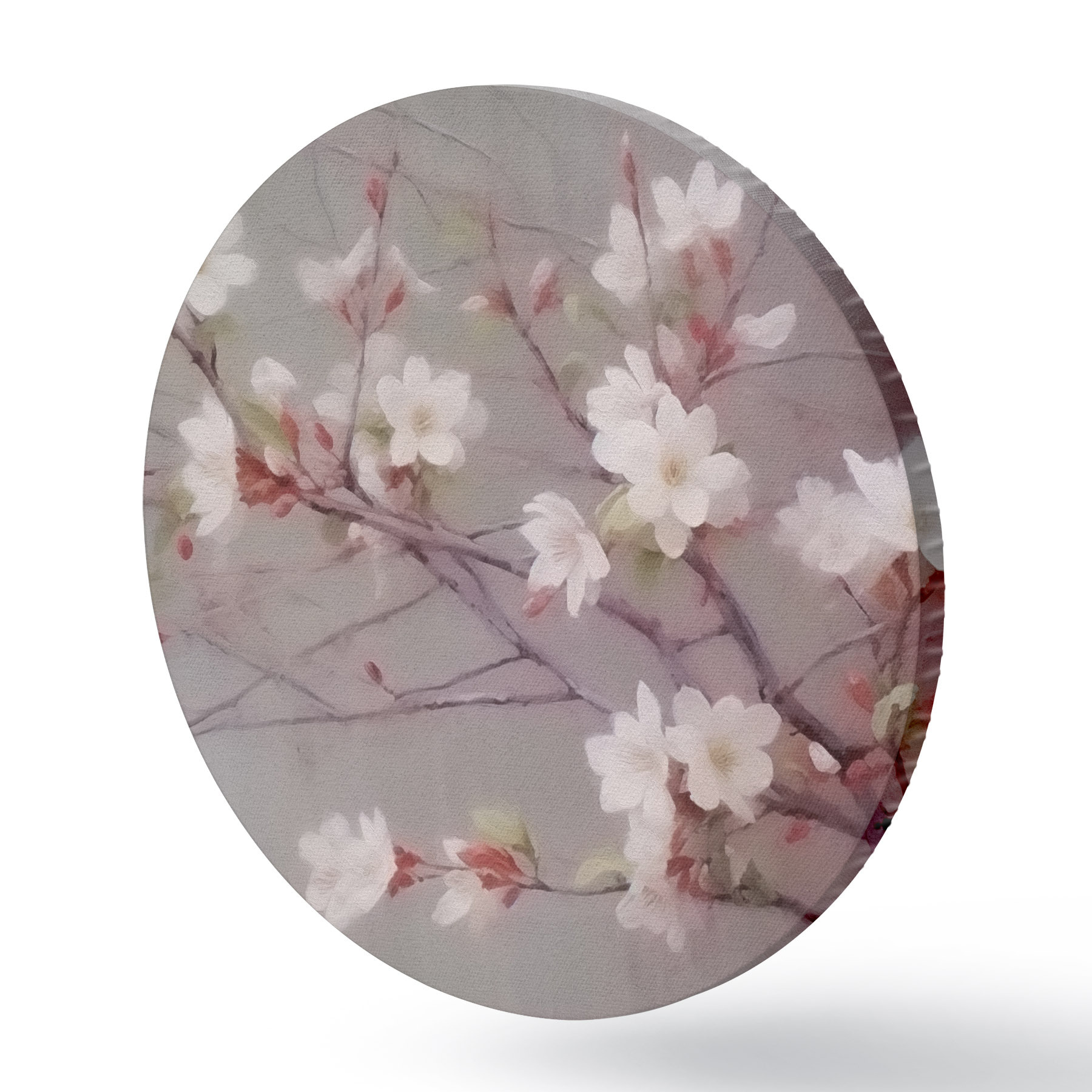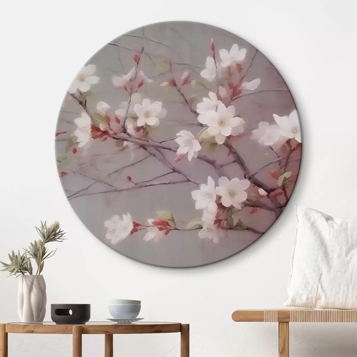 Apaļas gleznas Zariņš ar baltiem ziediem r42339