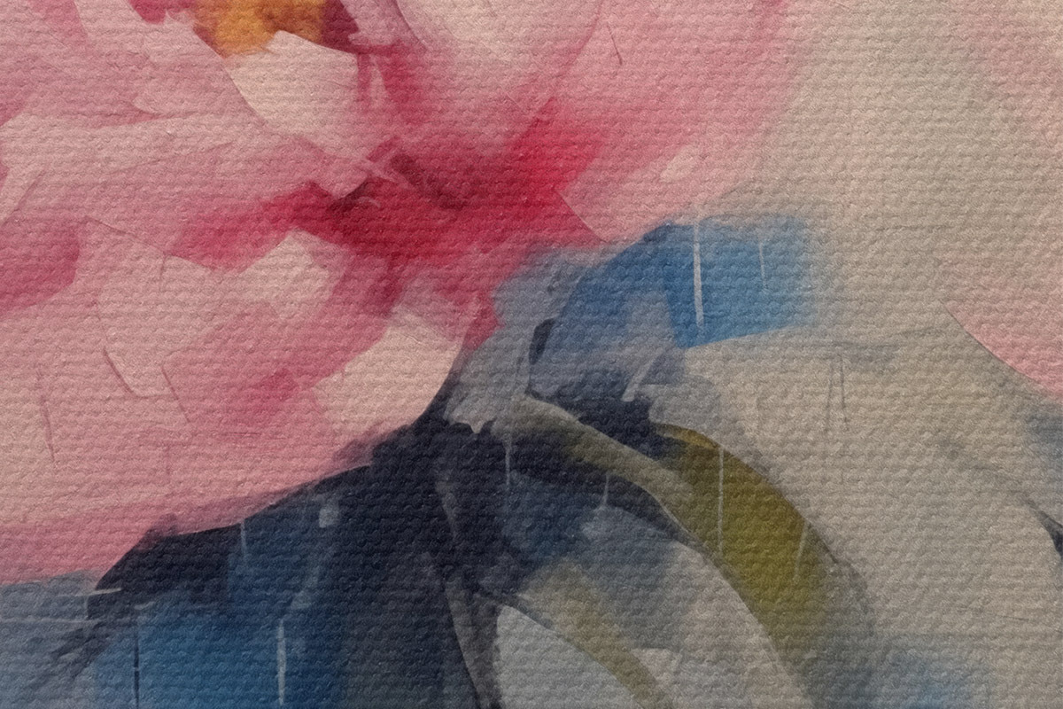 Smalkais diegu pinums uz šī audekla atgādina profesionālu mākslinieku audeklu virsmu.