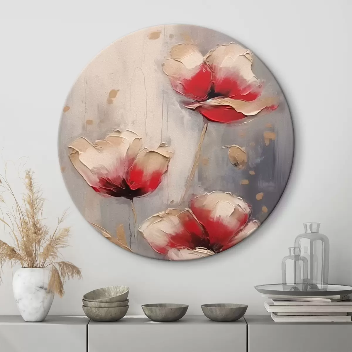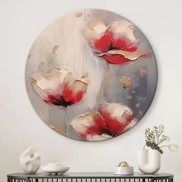Apaļas gleznas Balti un sarkani ziedi r42346