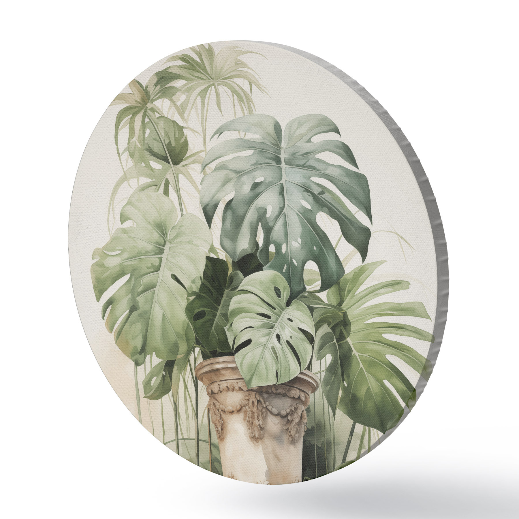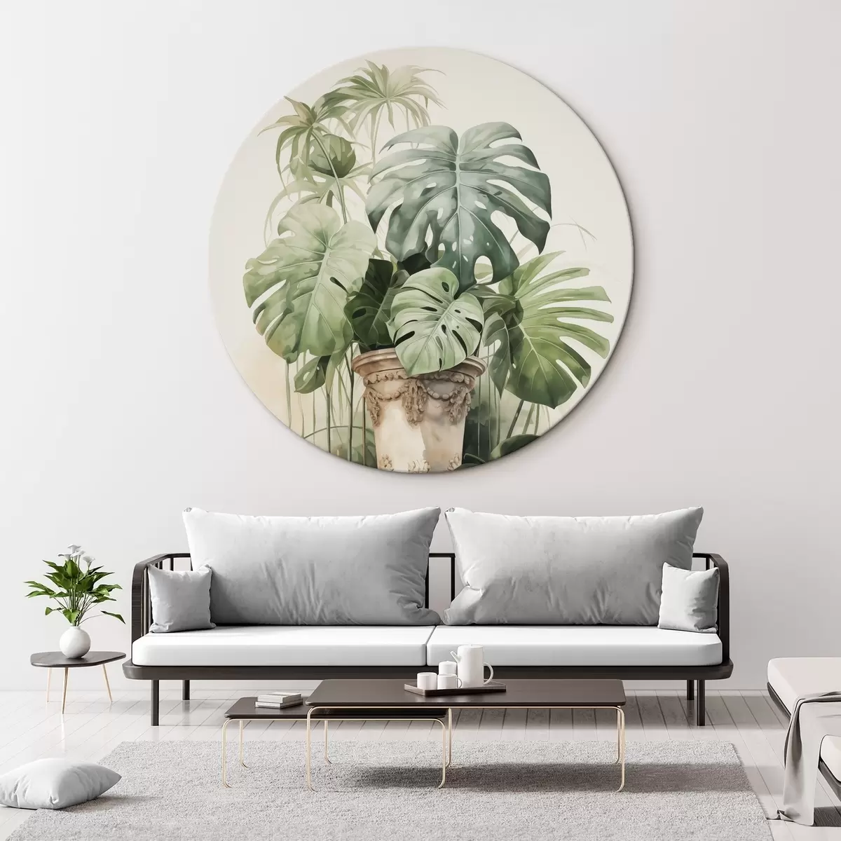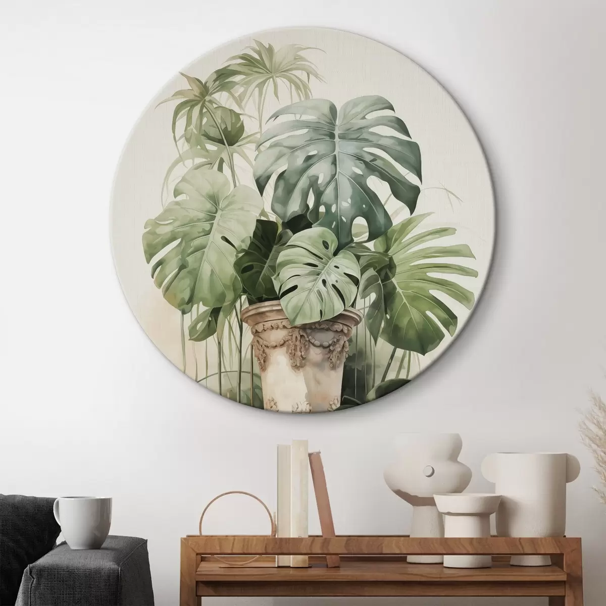 Apaļas gleznas Tropu monsteras lapas uz kolonnas imitācijas akvarelis r42351