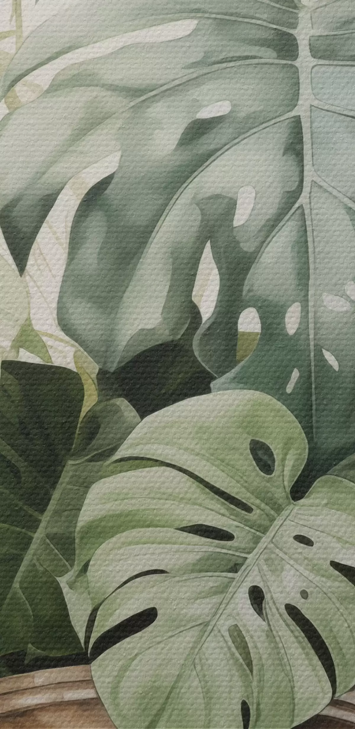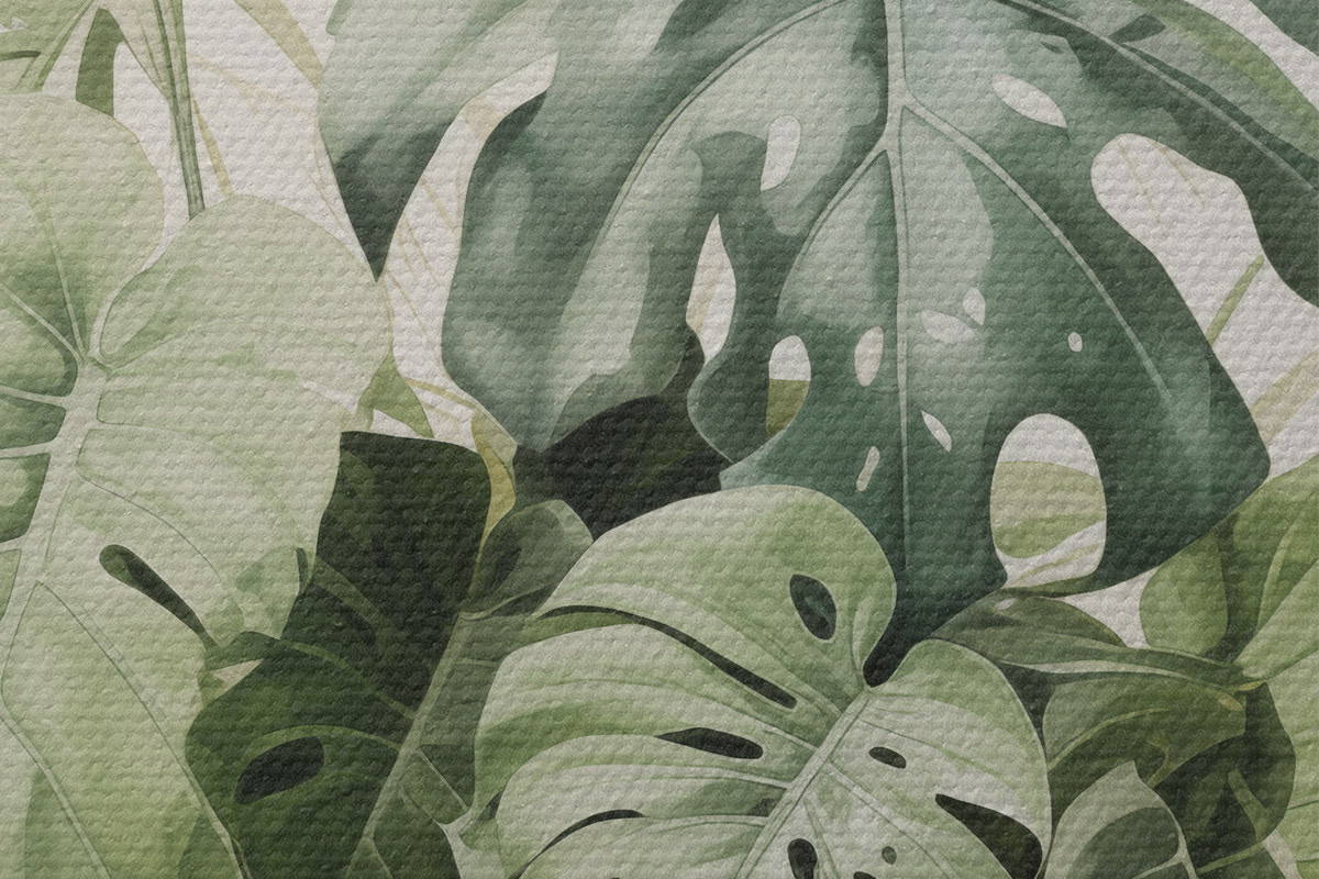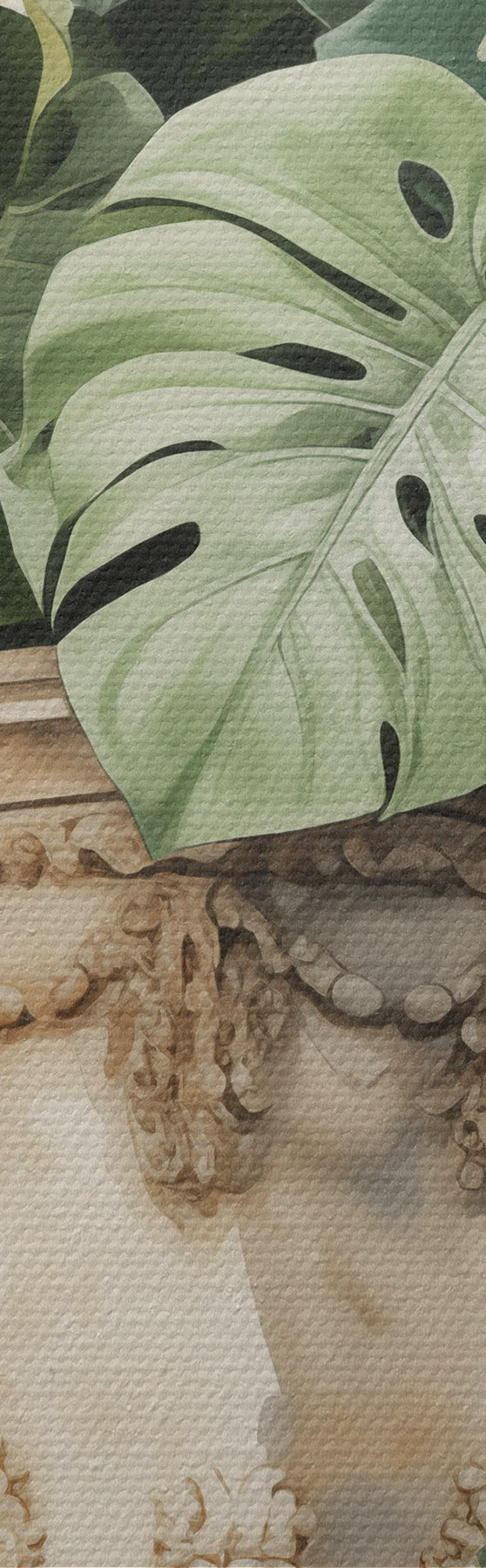 Attēls Tropu monsteras lapas uz kolonnas imitācijas akvarelis Nr r42351