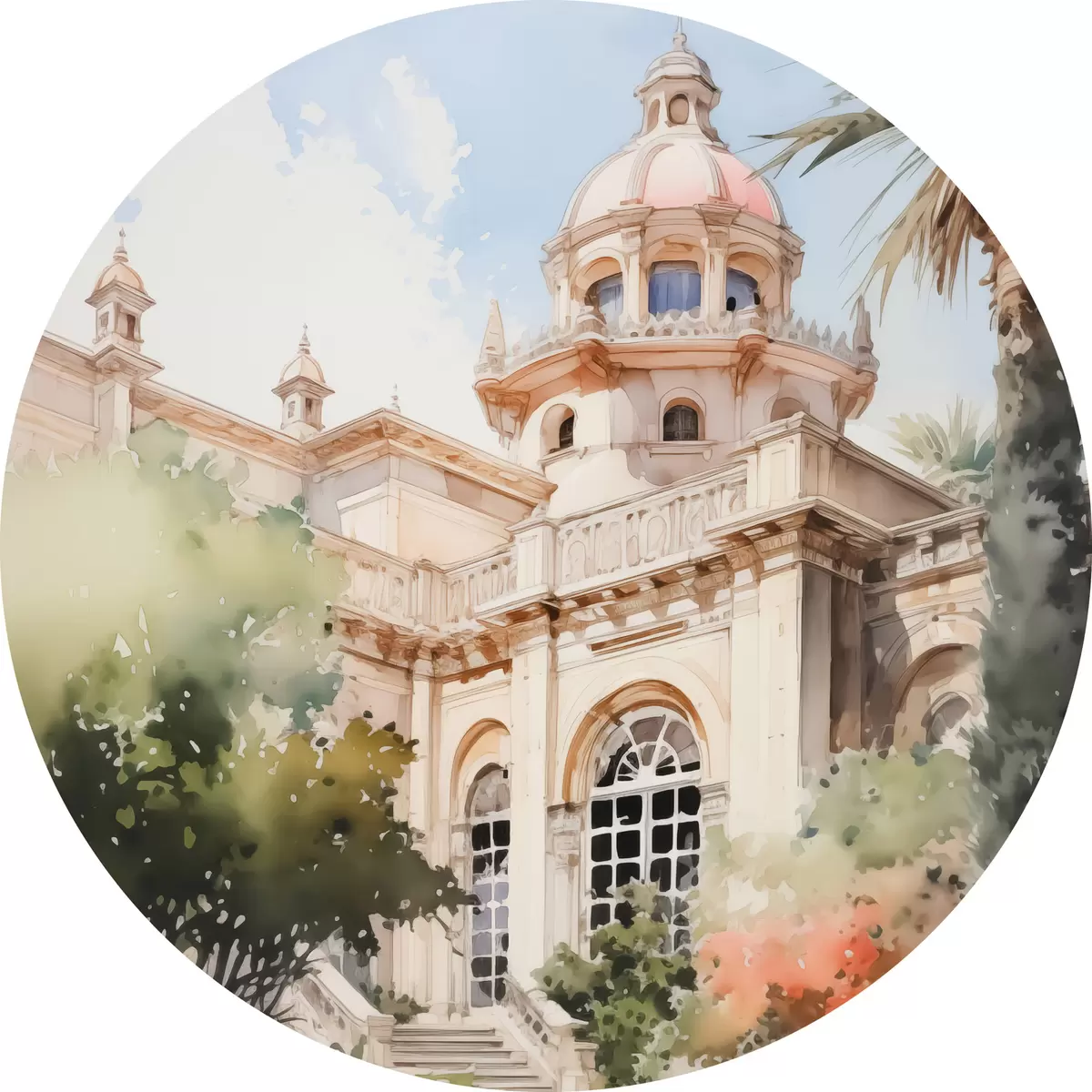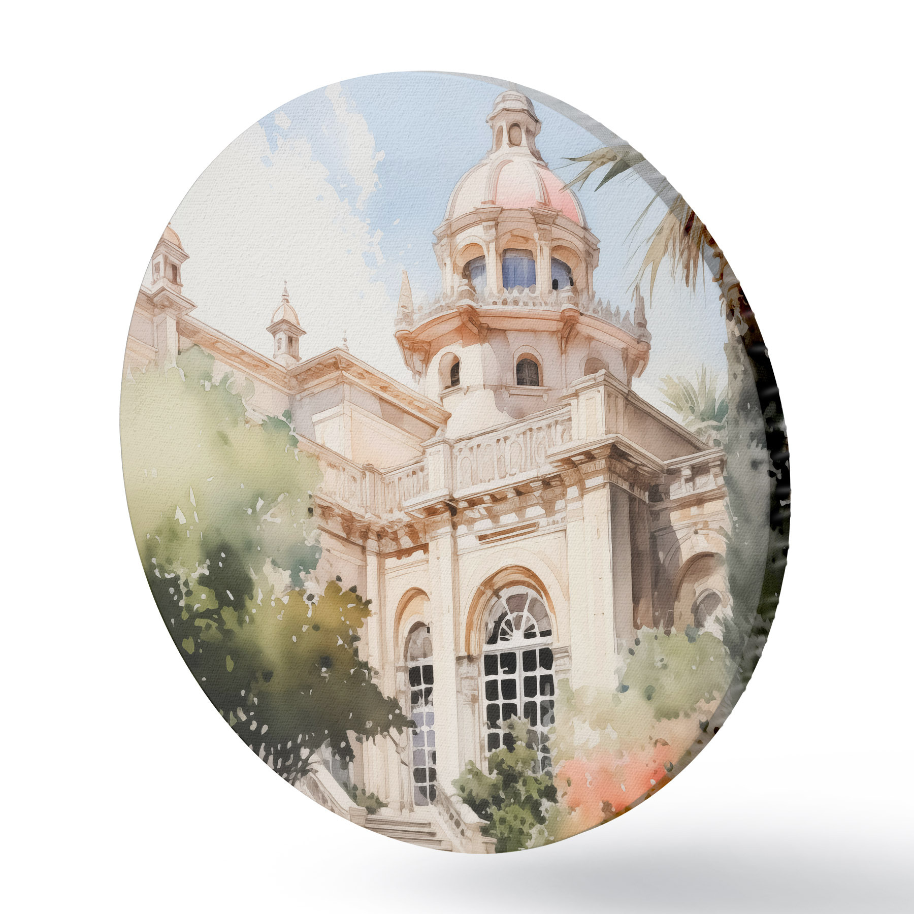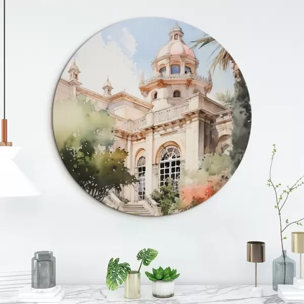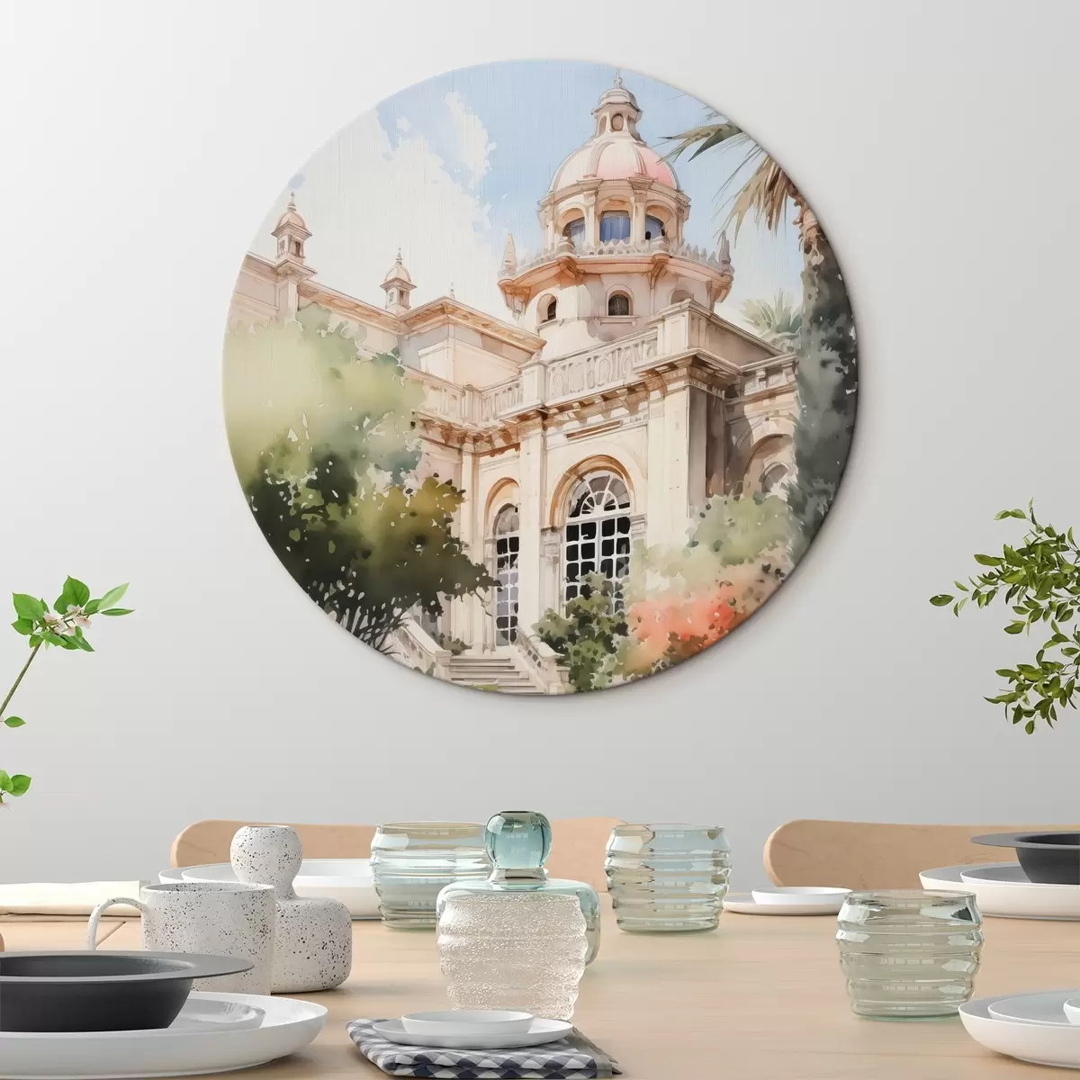 Apaļas gleznas Dārzs pie mājas imitācija akvarelis r42362