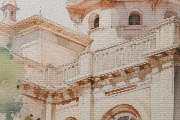 Attēls Dārzs pie mājas imitācija akvarelis Nr r42362