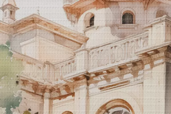 Attēls Dārzs pie mājas imitācija akvarelis Nr r42362