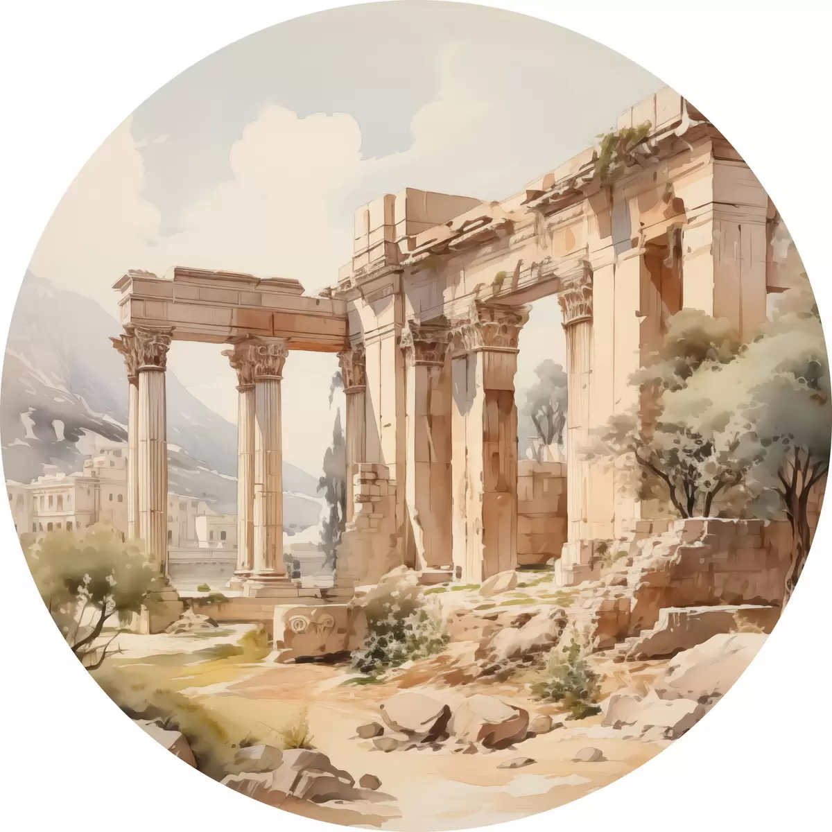 Apaļas gleznas Antīko drupu imitācija akvarelis r42366