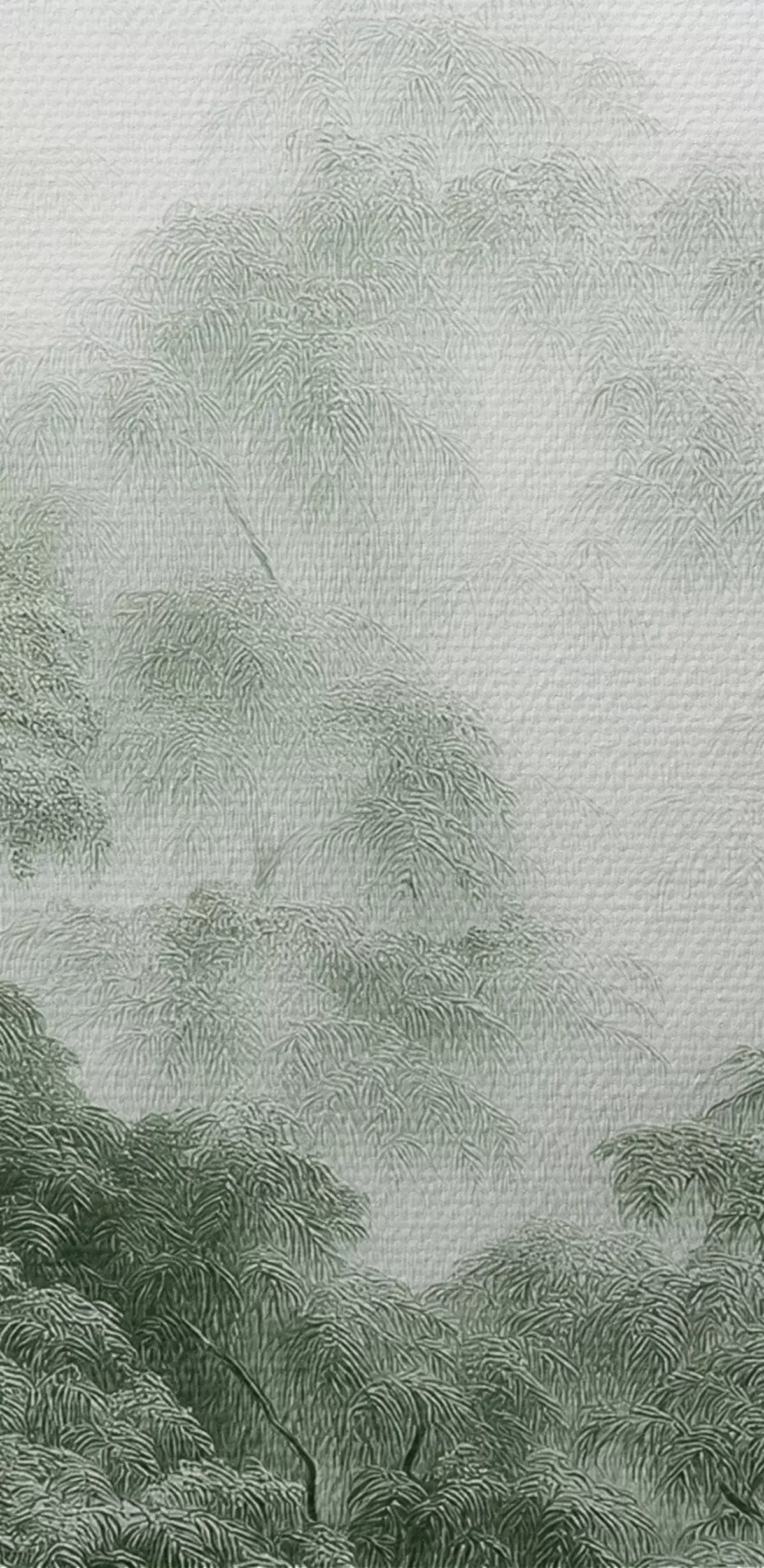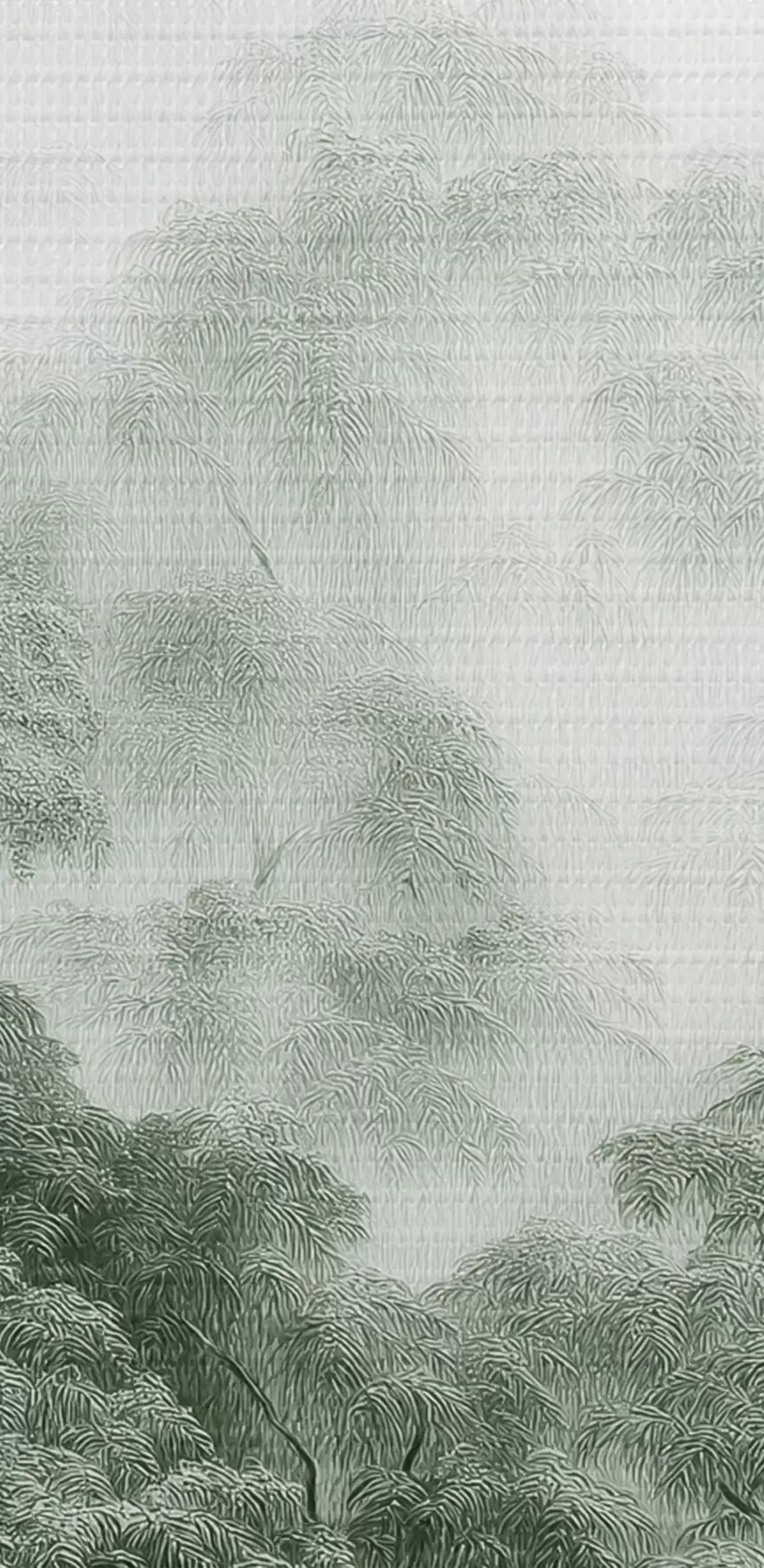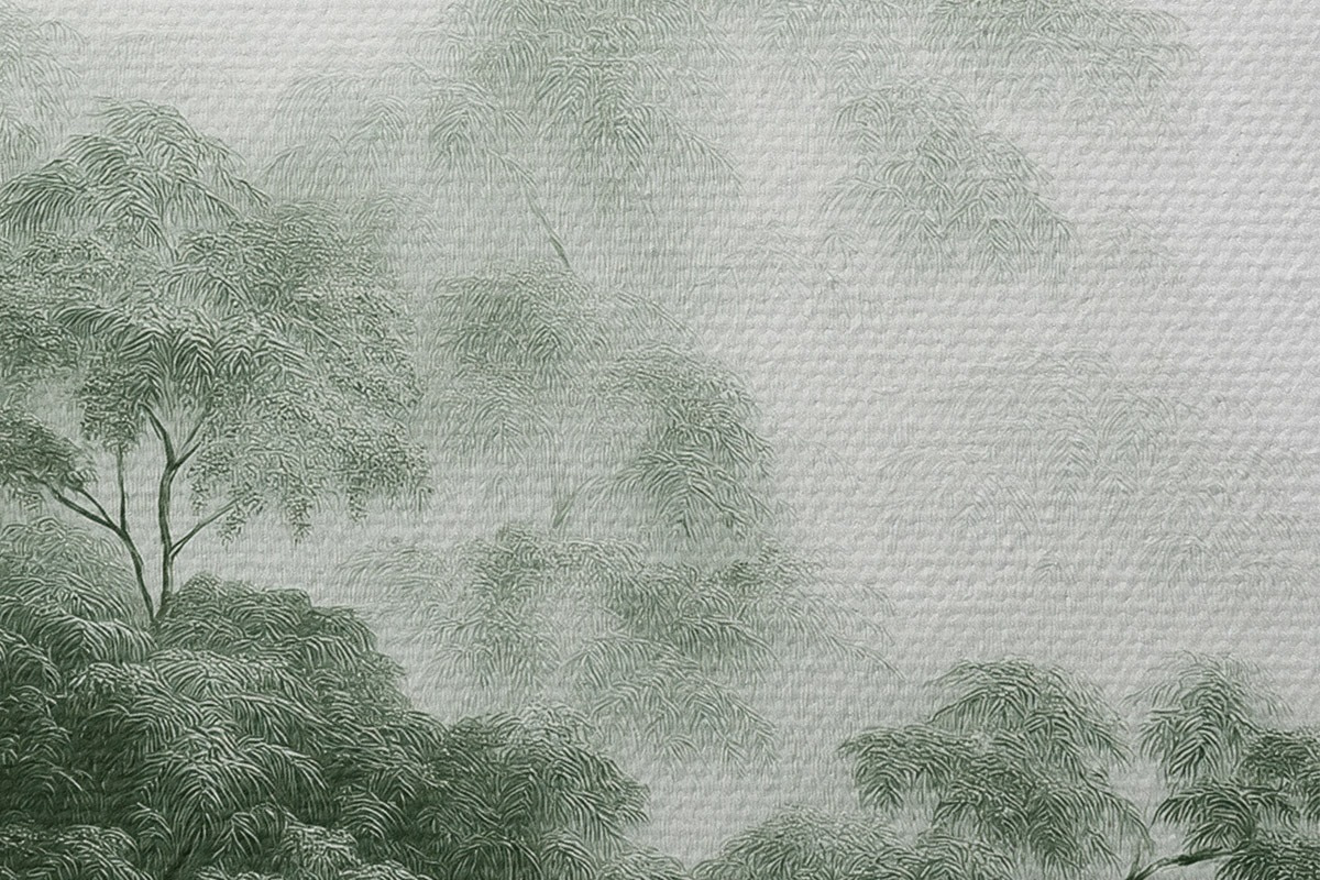 Attēls Tropu mežs miglā, palmas, zaļas krāsas Nr r42371