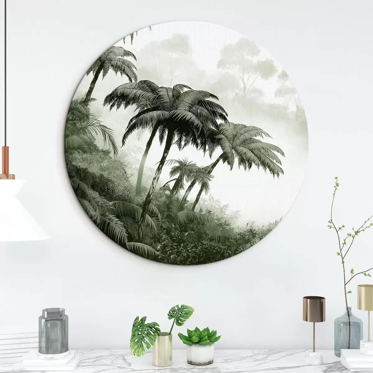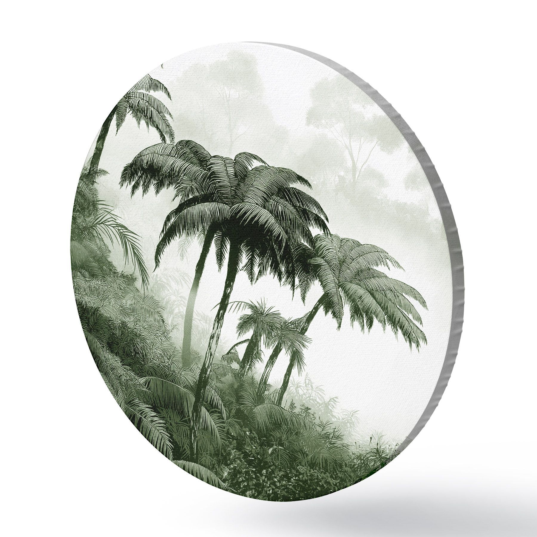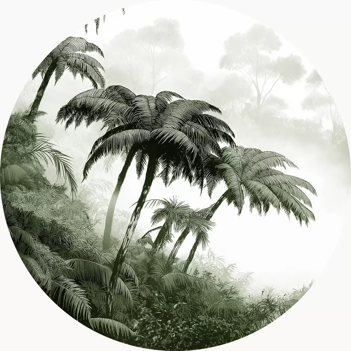 Apaļas gleznas Džungļu mežs miglā, palmas, daba, zaļas krāsas r42372v1