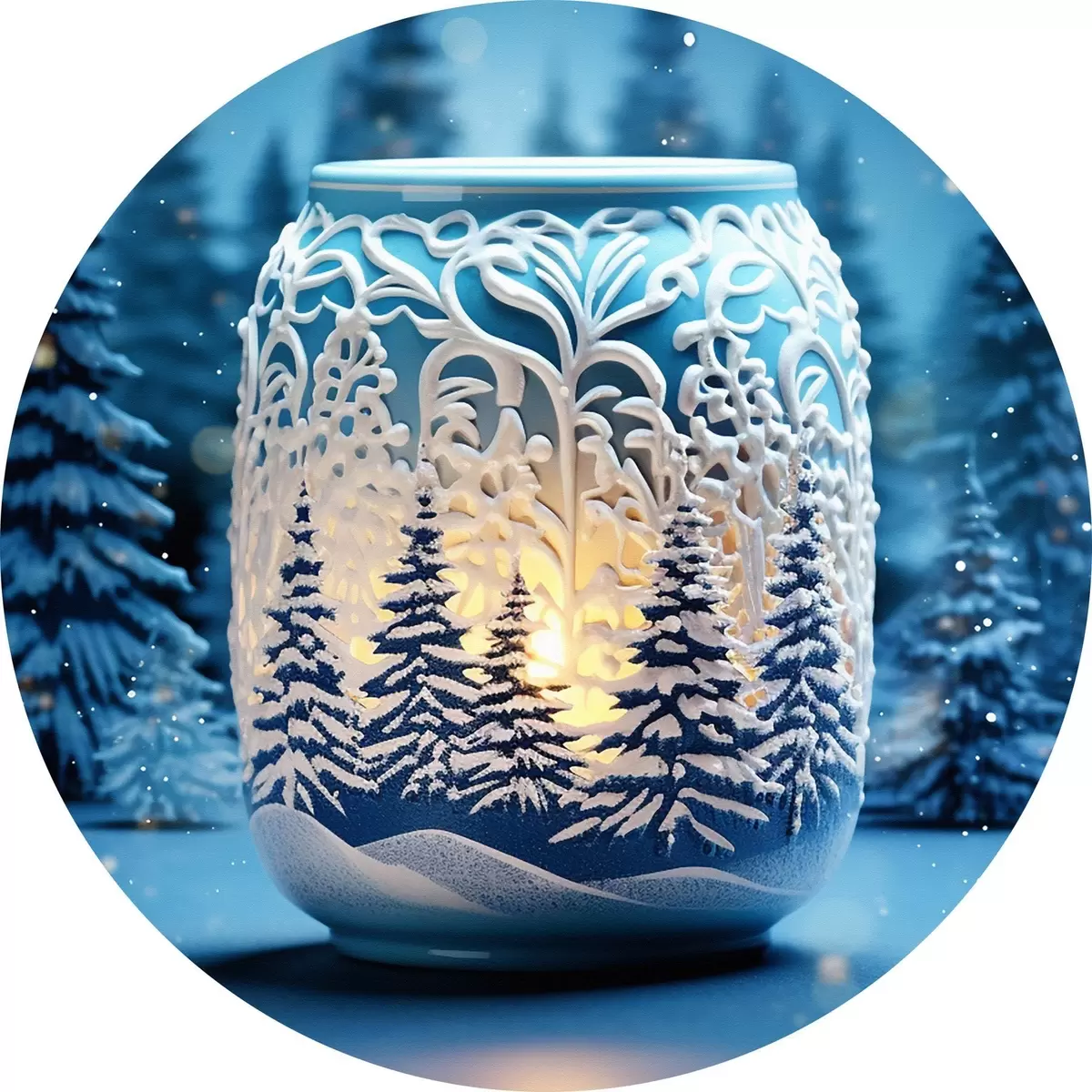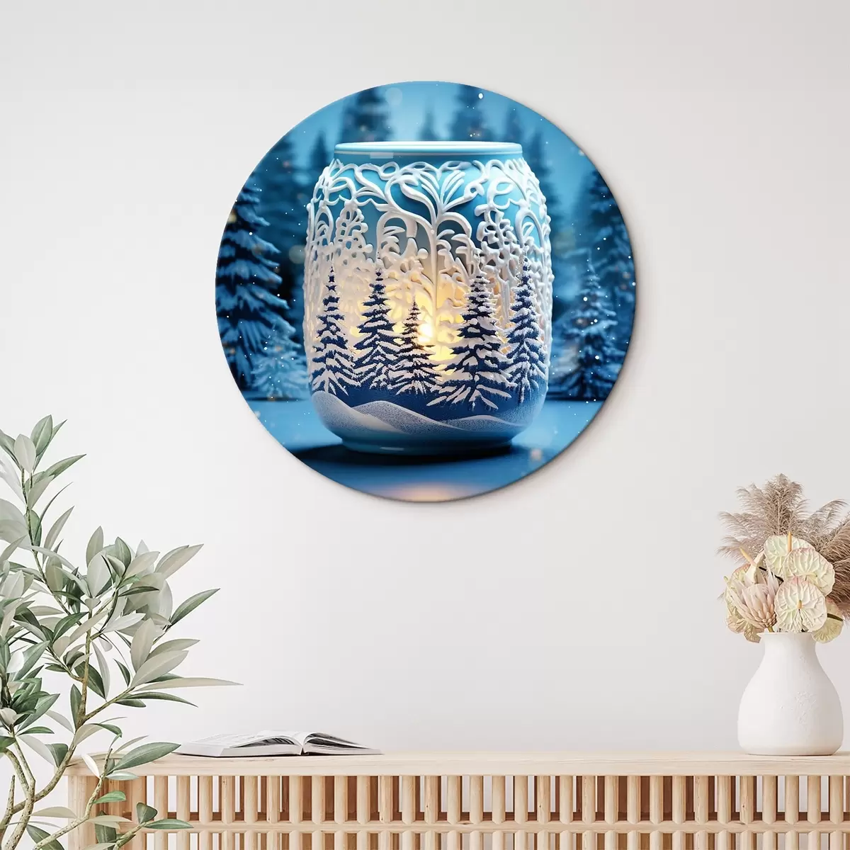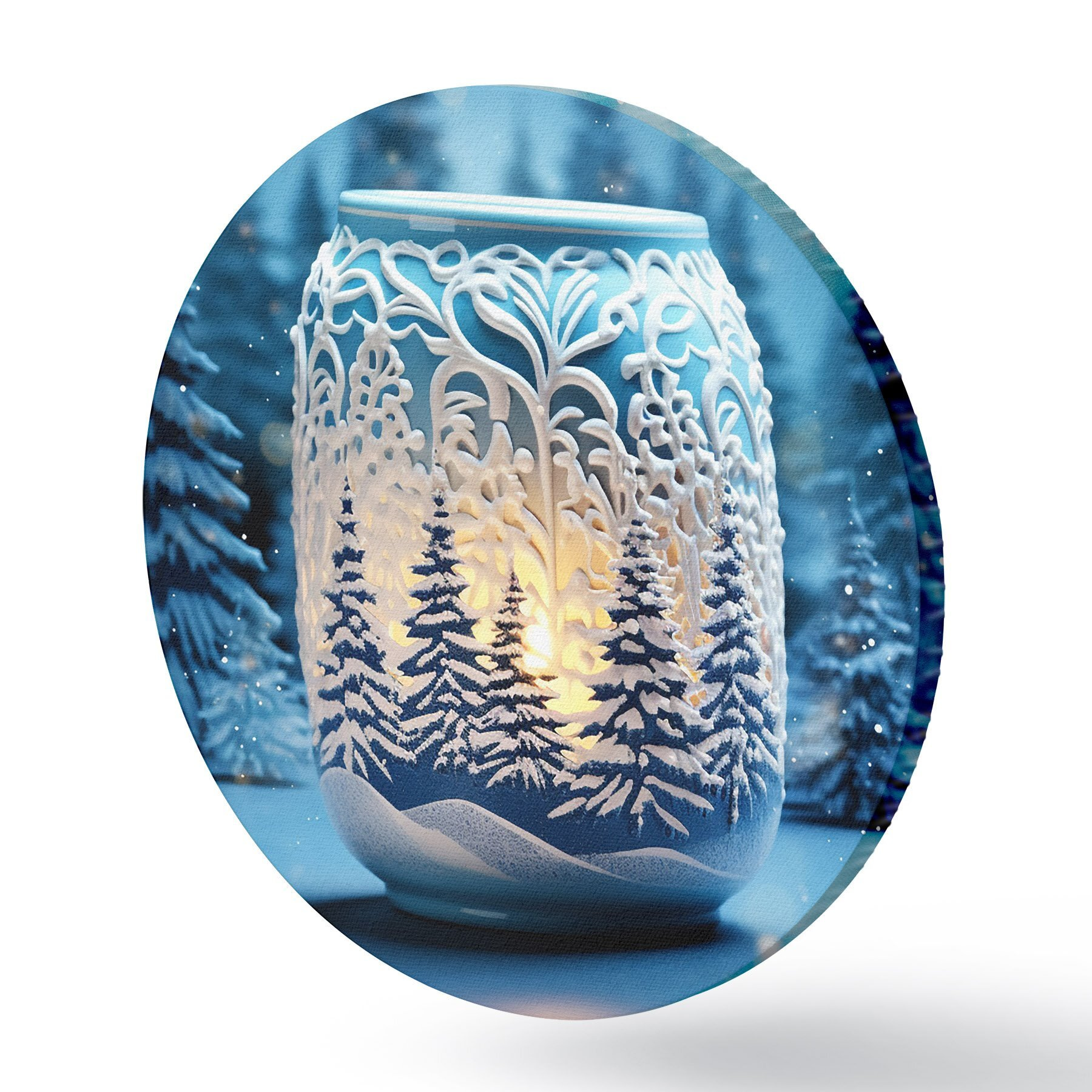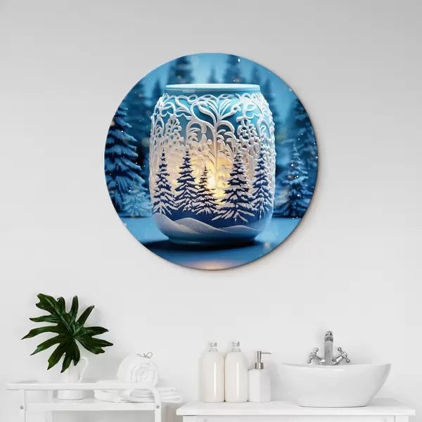 Apaļas gleznas Svece uz ziemas ainavas fona r42380