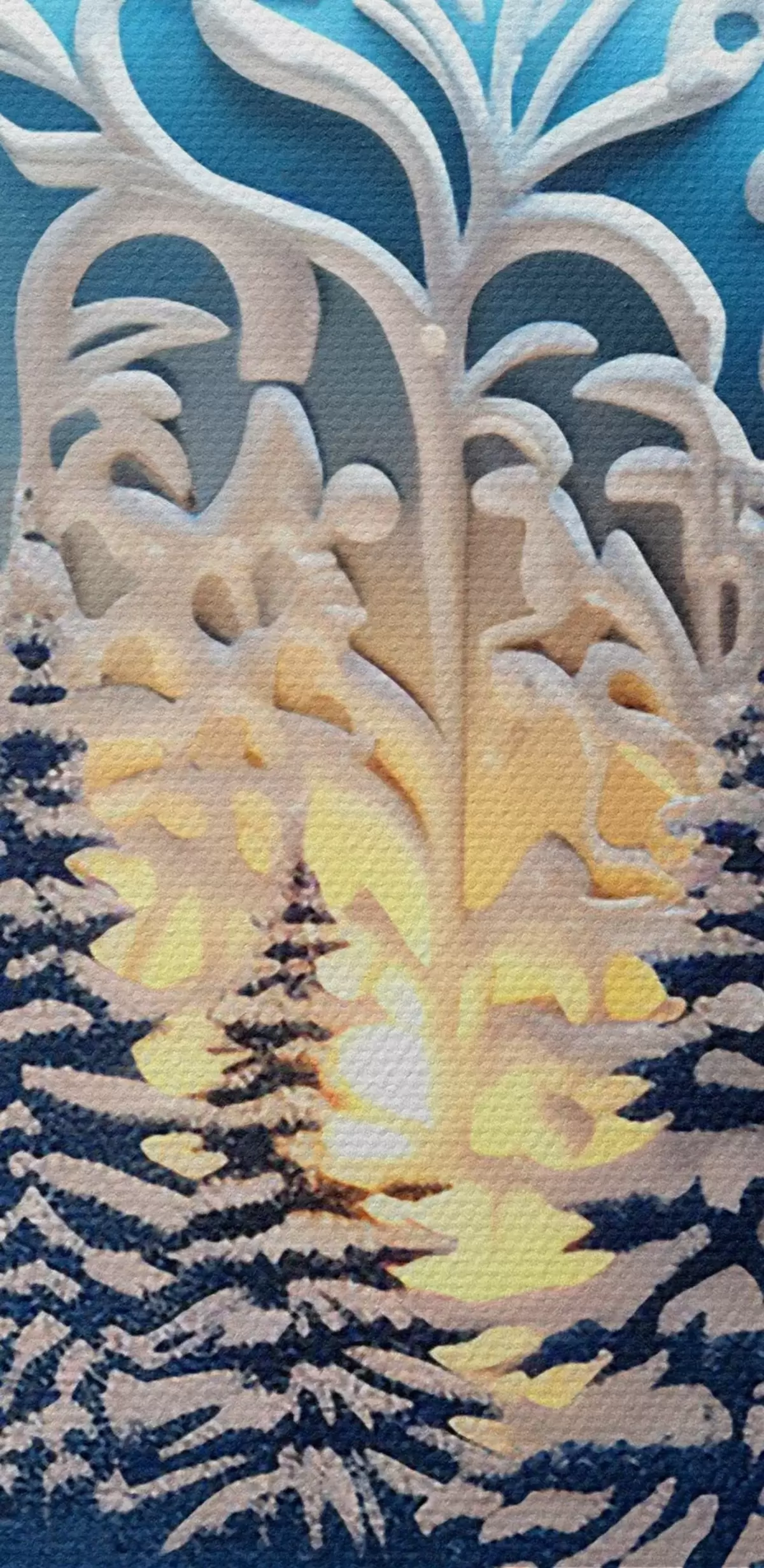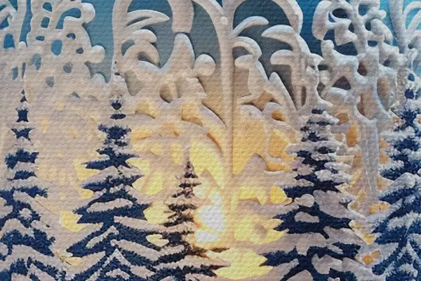 Smalkais diegu pinums uz šī audekla atgādina profesionālu mākslinieku audeklu virsmu.