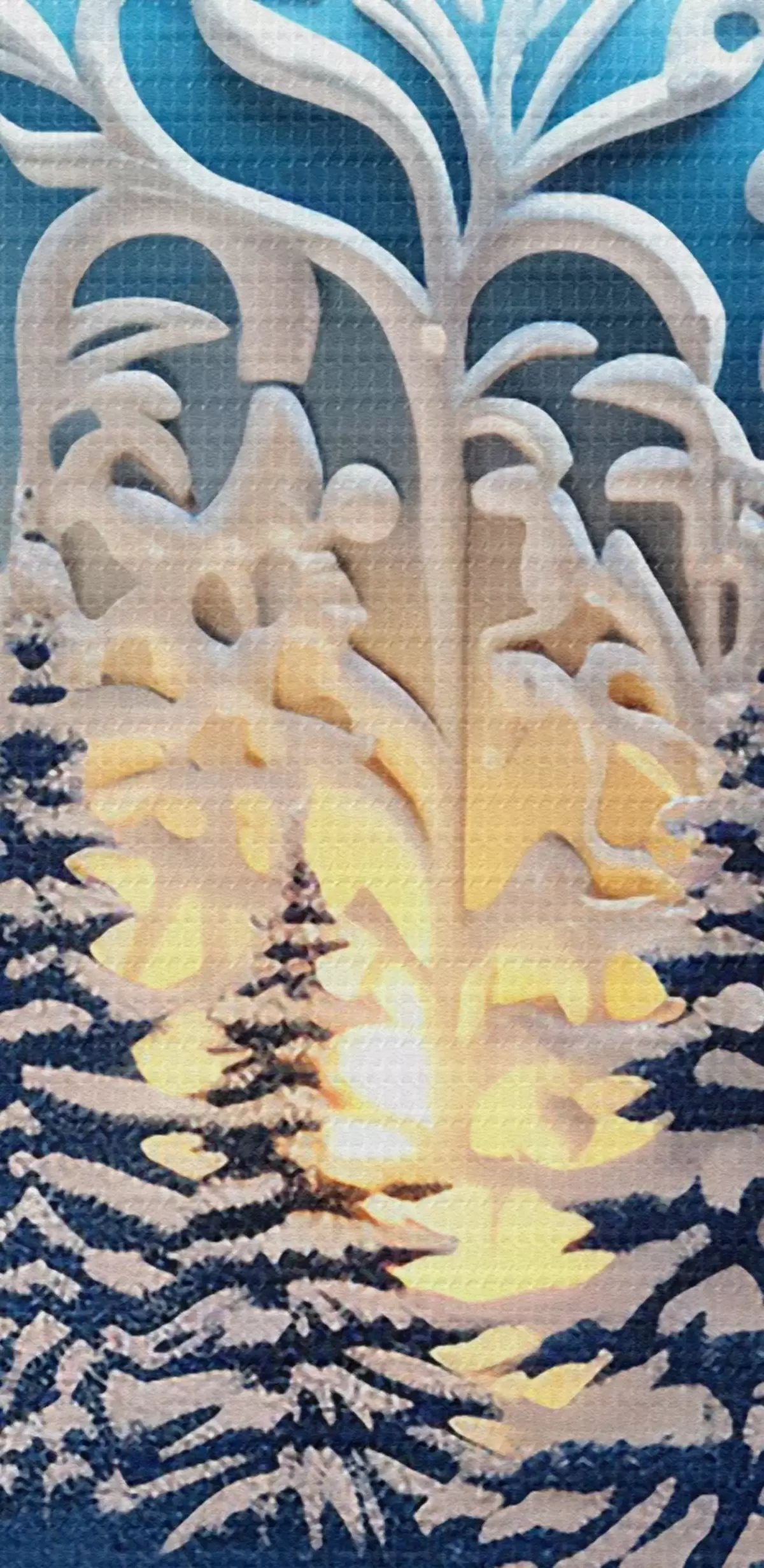 Lai izstieptu audeklu uz nestuvēm, nebojājot attēlu, mēs izmantojam spoguļattēlu.