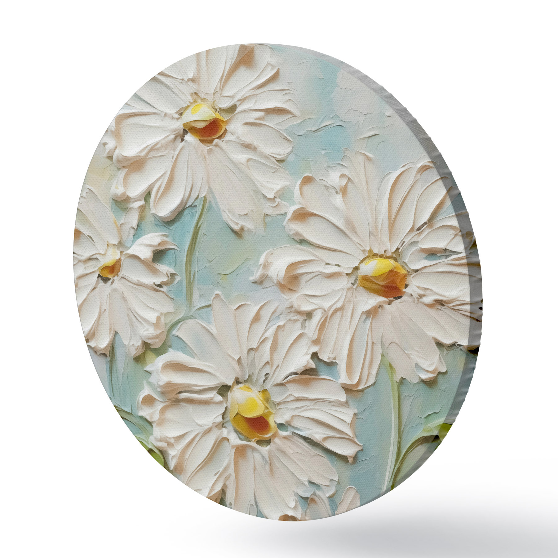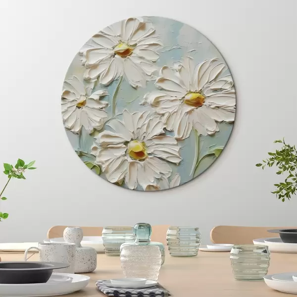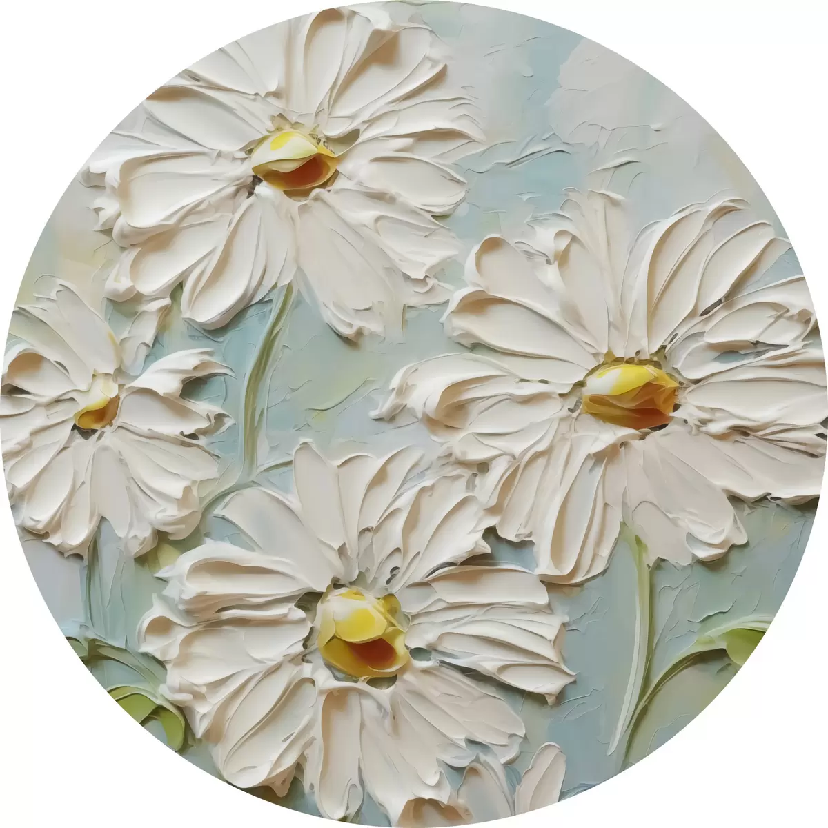 Apaļas gleznas Baltas margrietiņas, kas imitē krāsu triepienus r42422