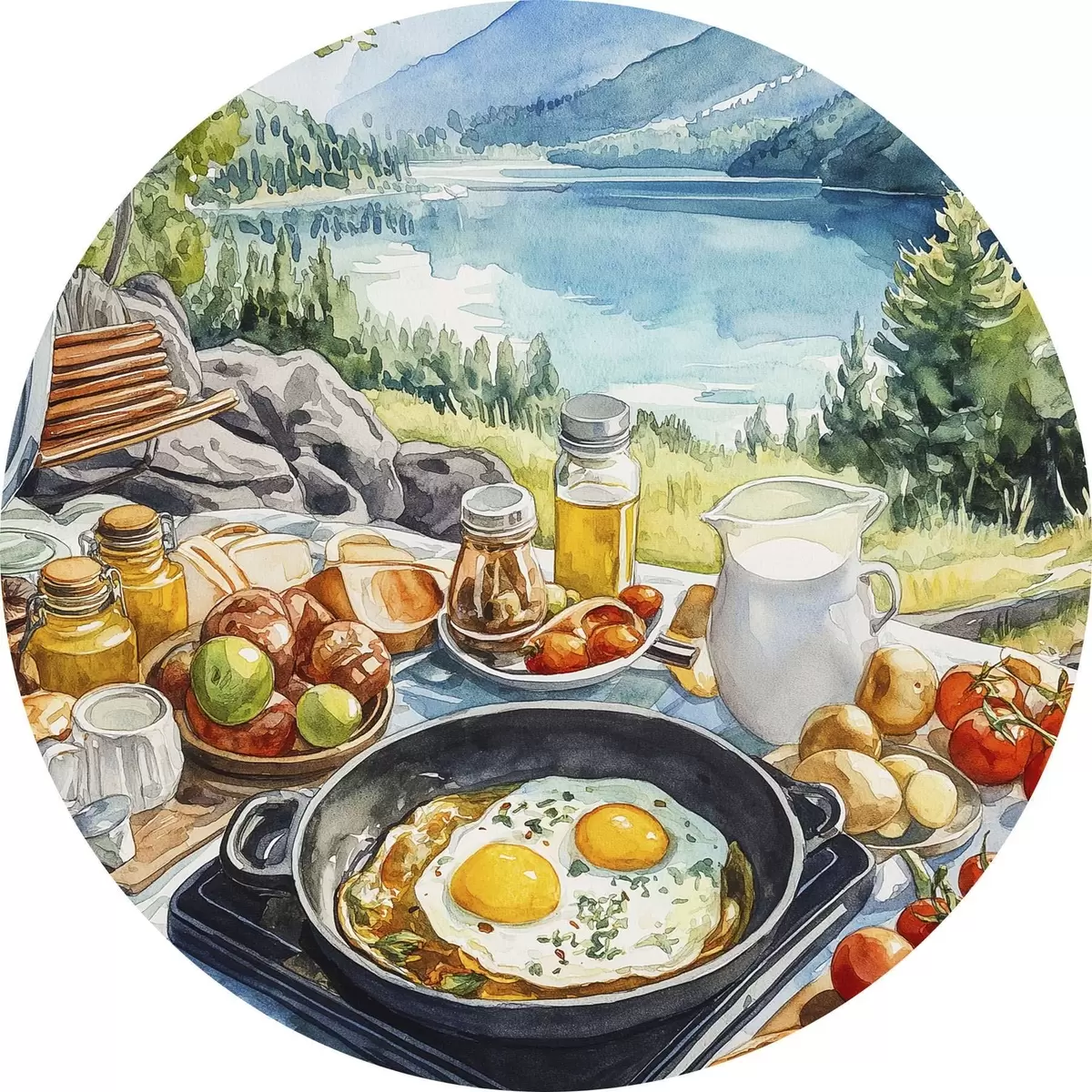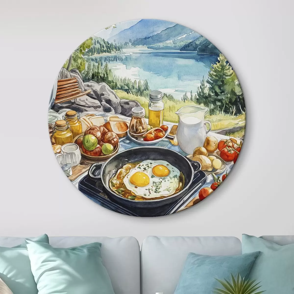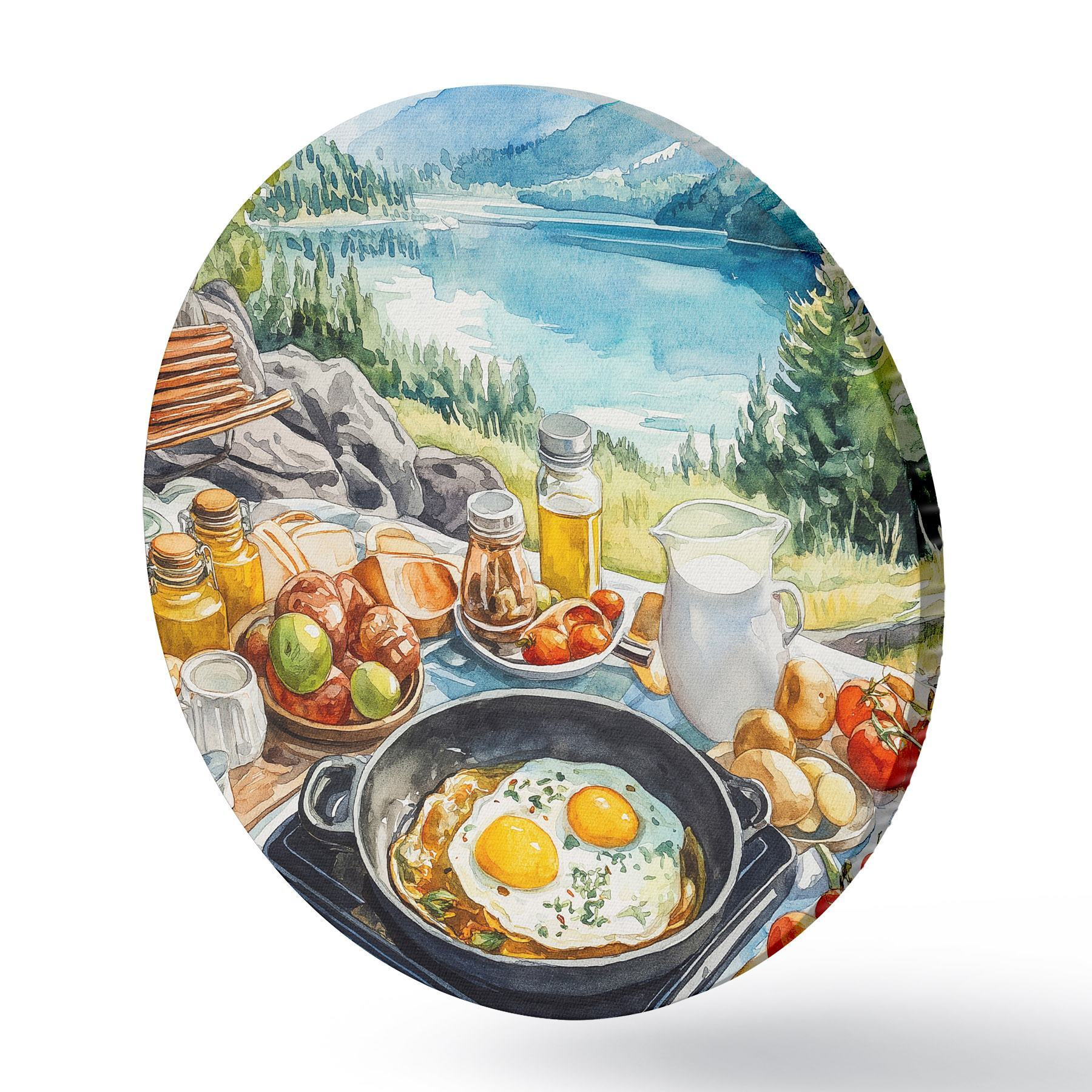 Apaļas gleznas Estētiskas brokastis pie ezera, akvareļu stilā r42432