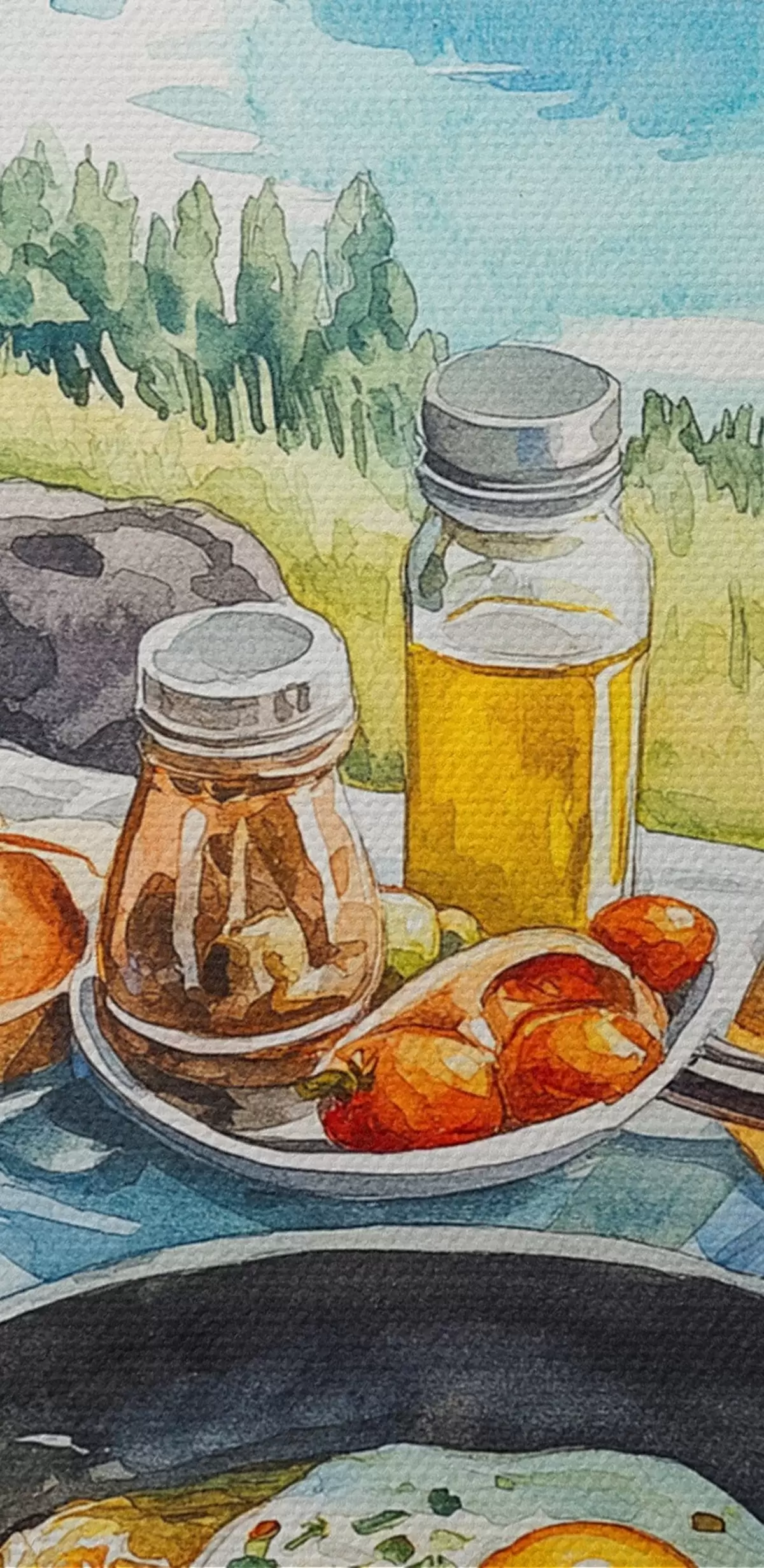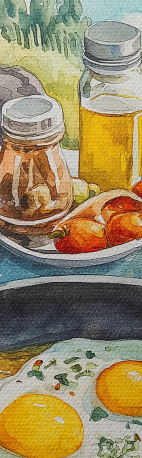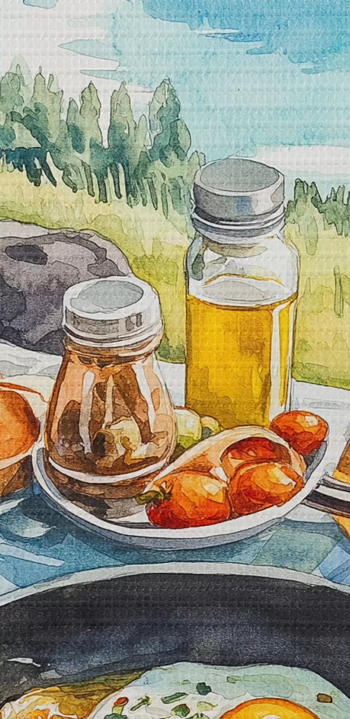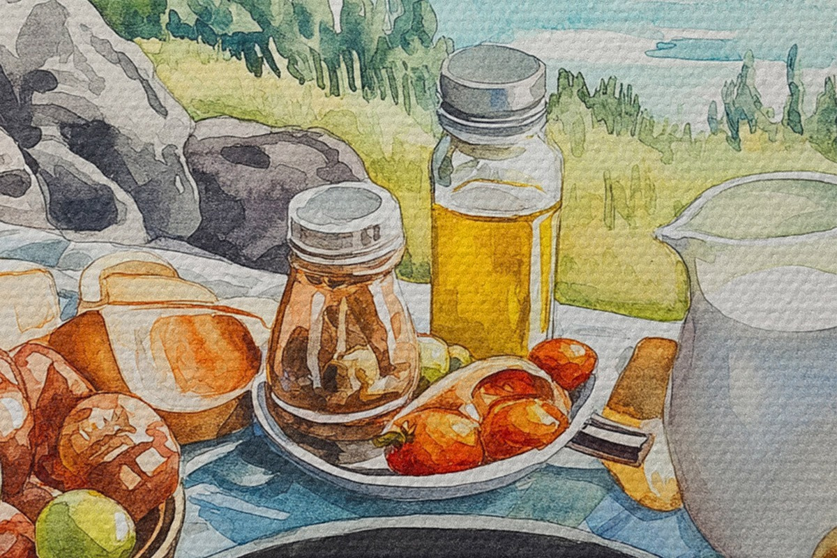 Attēls Estētiskas brokastis pie ezera, akvareļu stilā Nr r42432