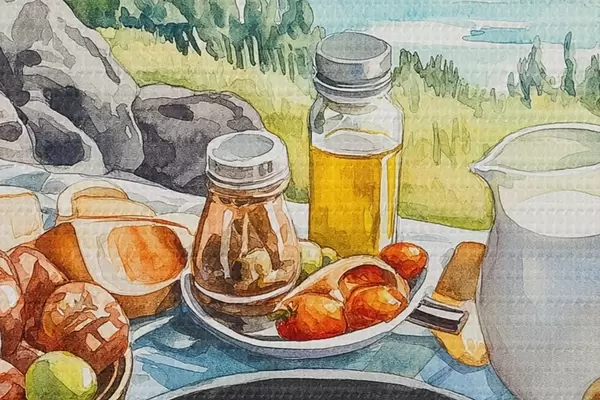 Attēls Estētiskas brokastis pie ezera, akvareļu stilā Nr r42432