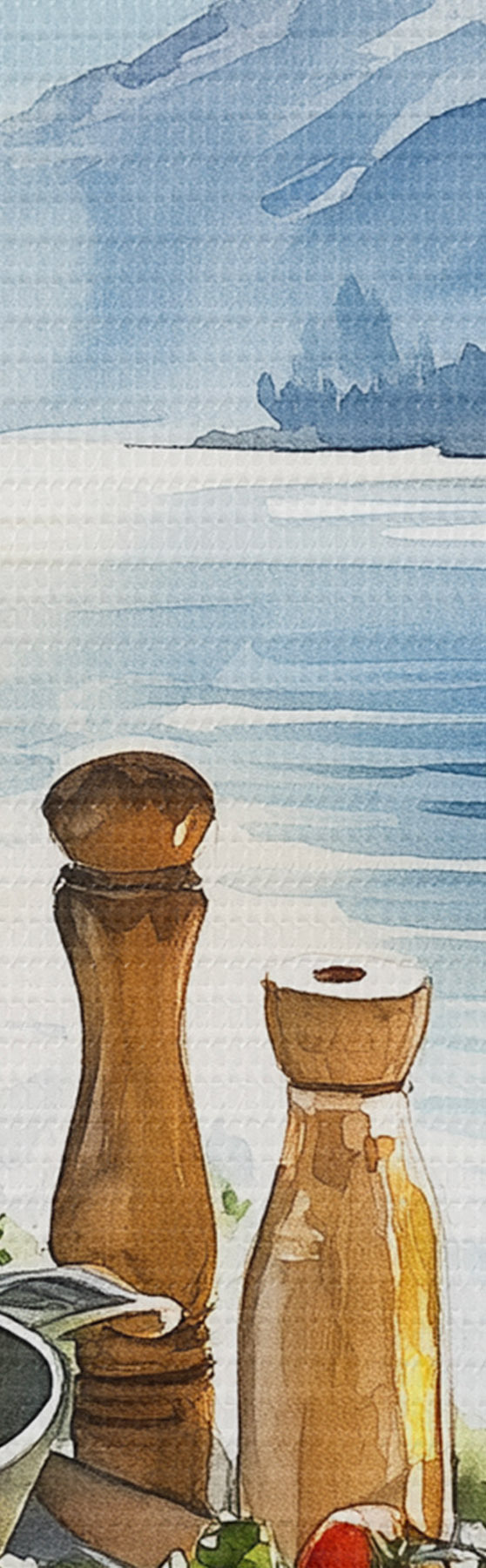 Attēls Skaists vasaras rīts, ezers, akvareļu stilā, brokastis, ceļošana Nr r42433