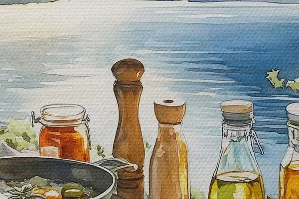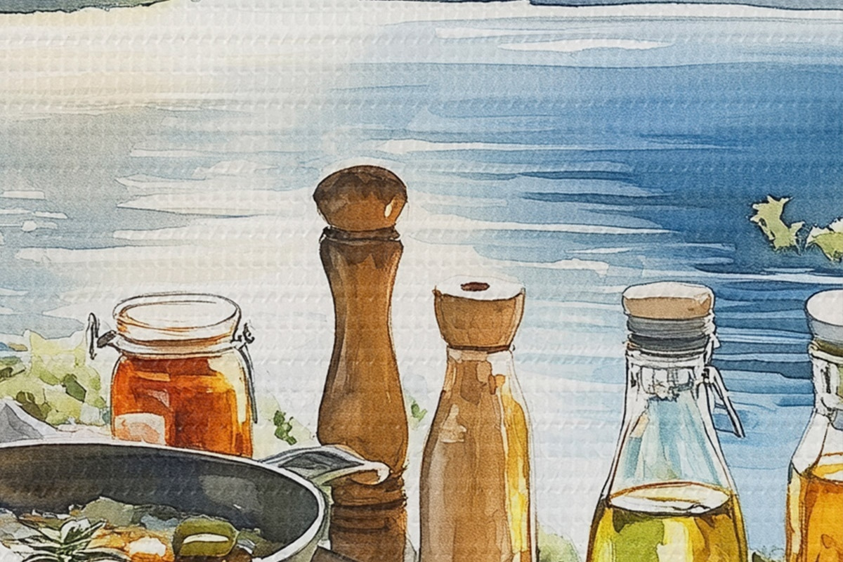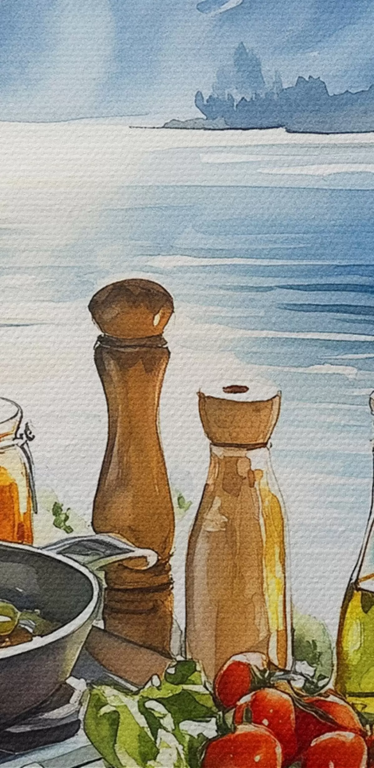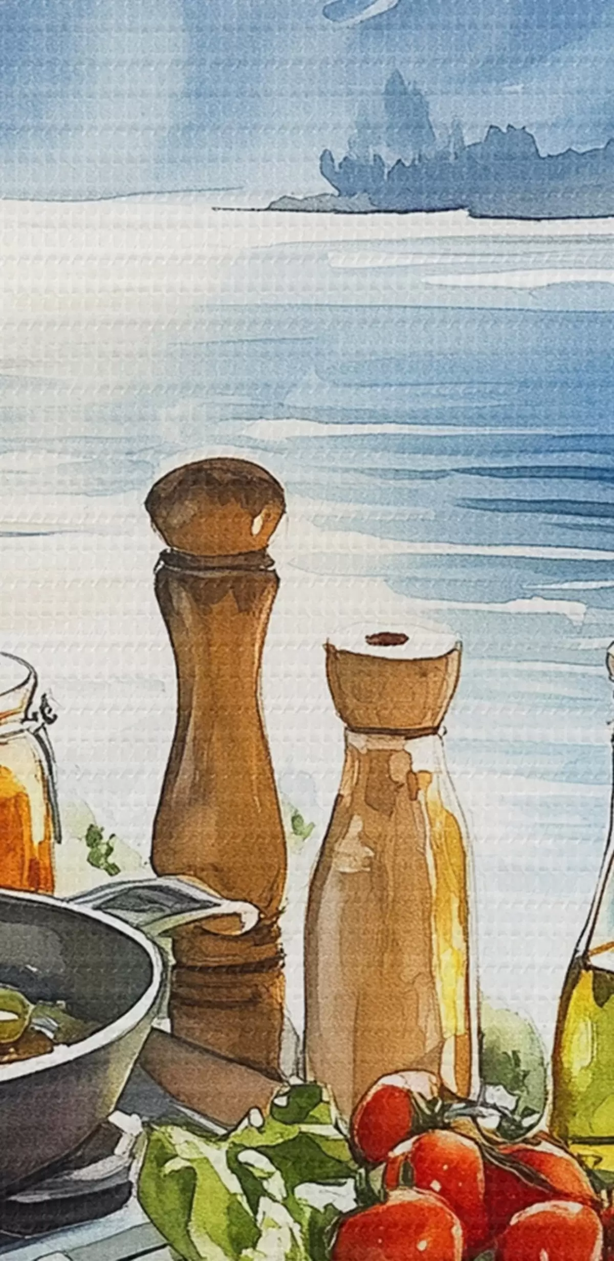 Attēls Skaists vasaras rīts, ezers, akvareļu stilā, brokastis, ceļošana Nr r42433