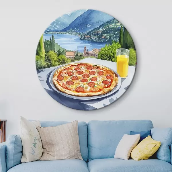 Apaļas gleznas Akvareļu stils, Itālija, pica, vecpilsēta, kalnu ainava r42435