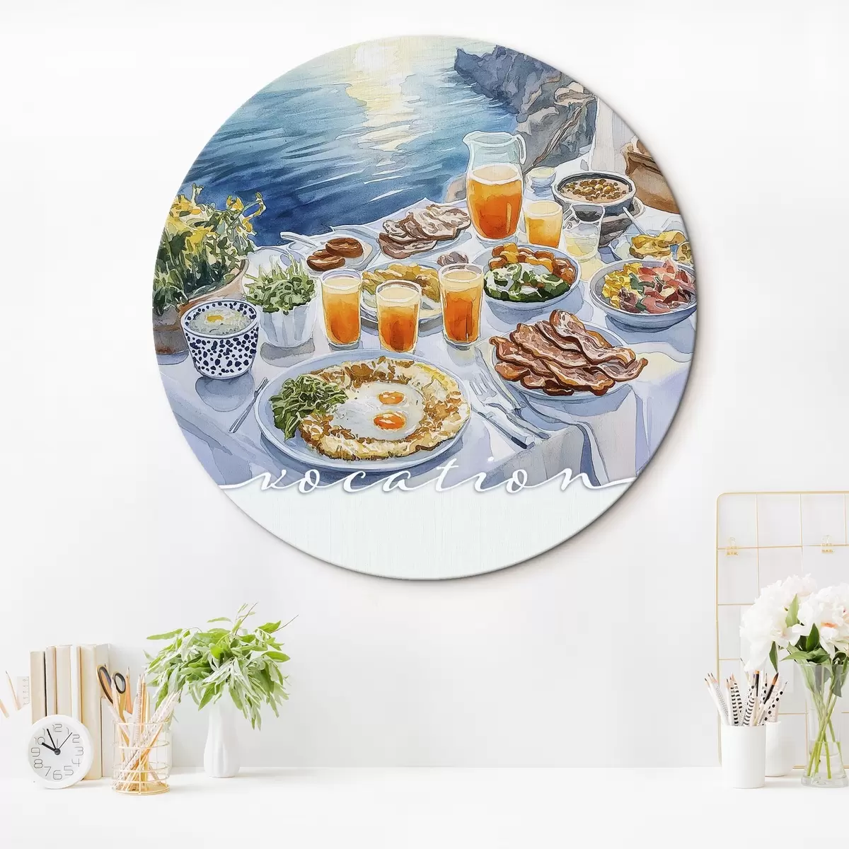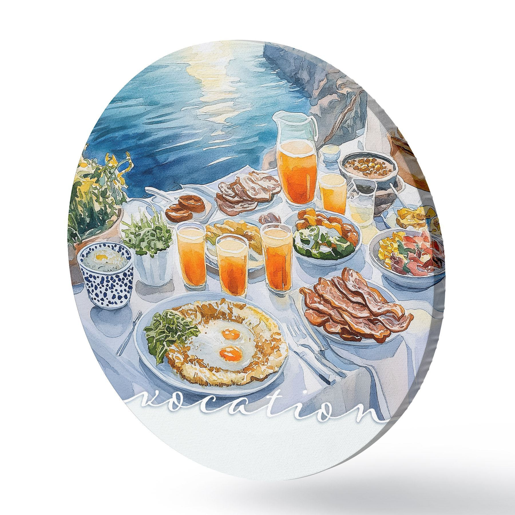 Apaļas gleznas Romantiska atpūta Grieķijā, akvareļu stilā, brokastis, saullēkts r42453