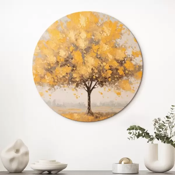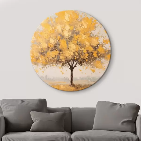 Apaļas gleznas Koks ar dzeltenām lapām impresionisma stilā r42480