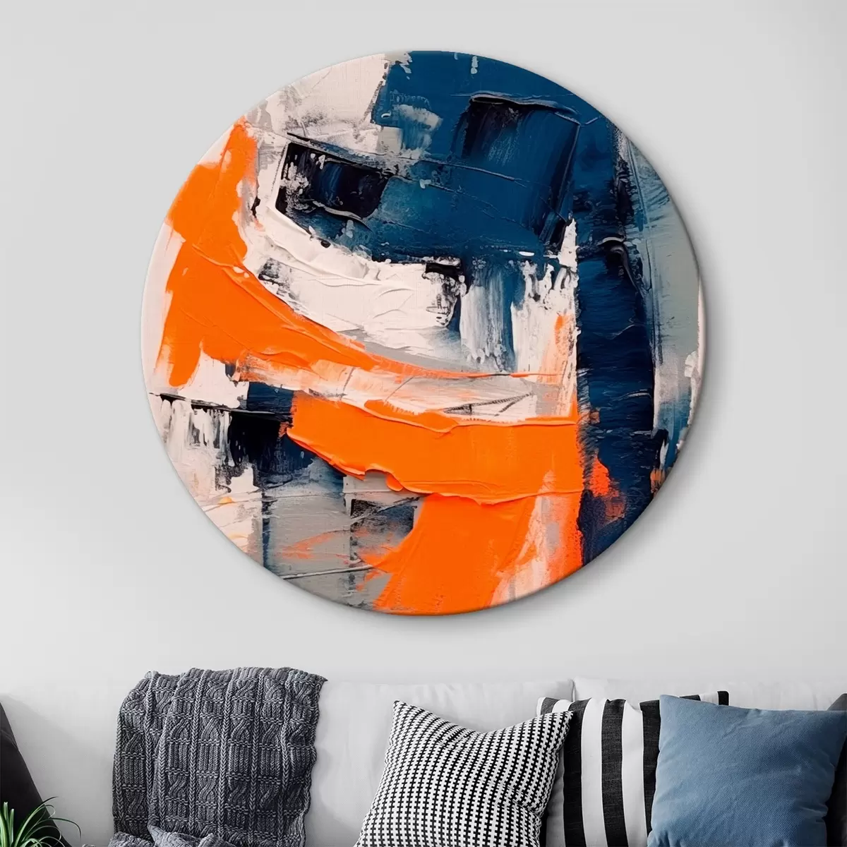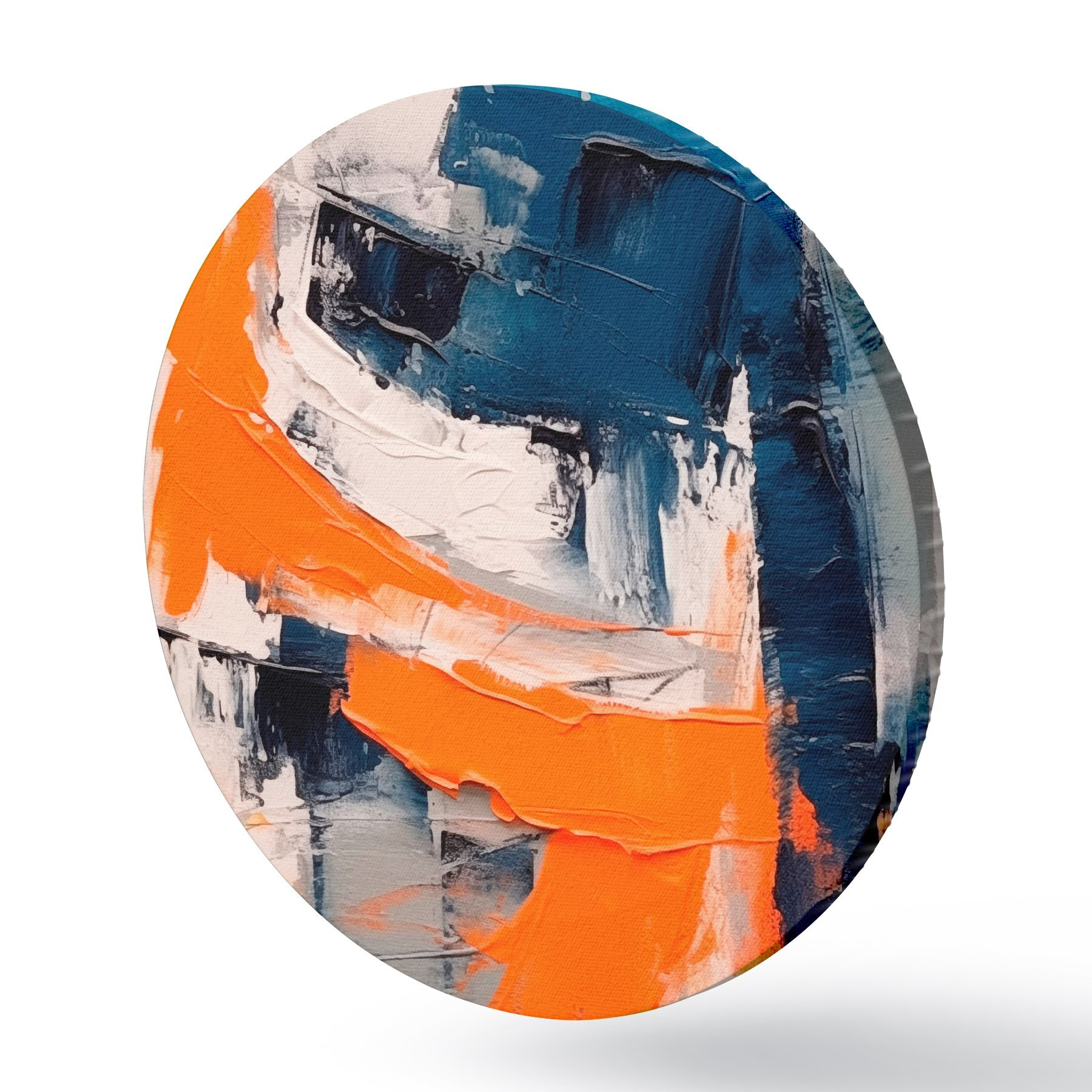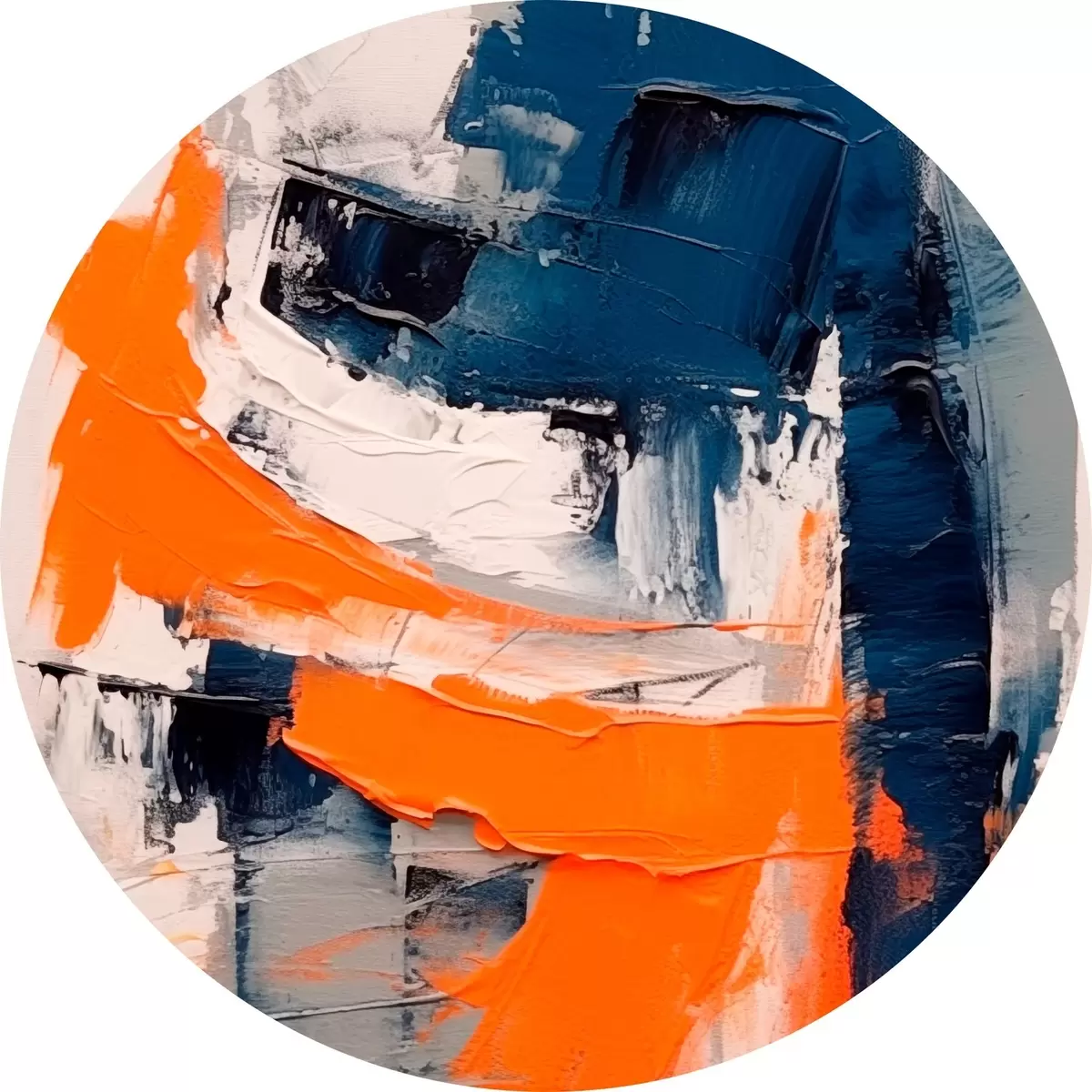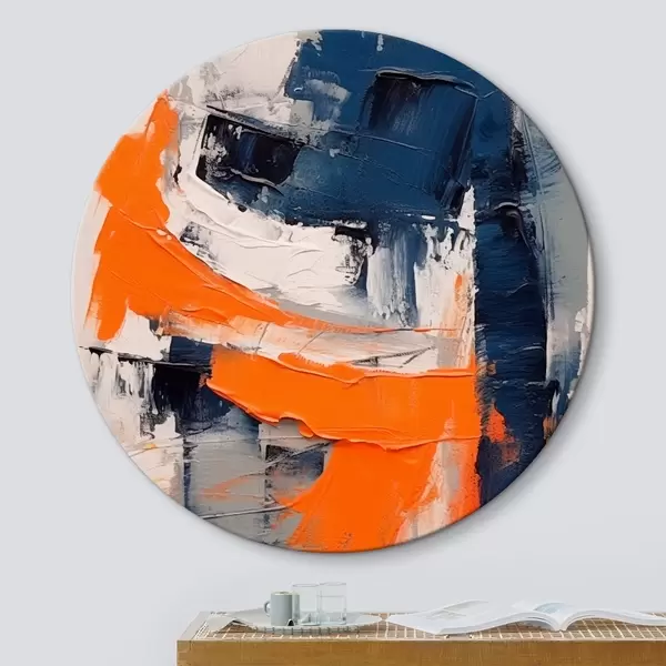 Apaļas gleznas Abstrakta kompozīcija ar spilgti oranžiem un ziliem akcentiem r42482