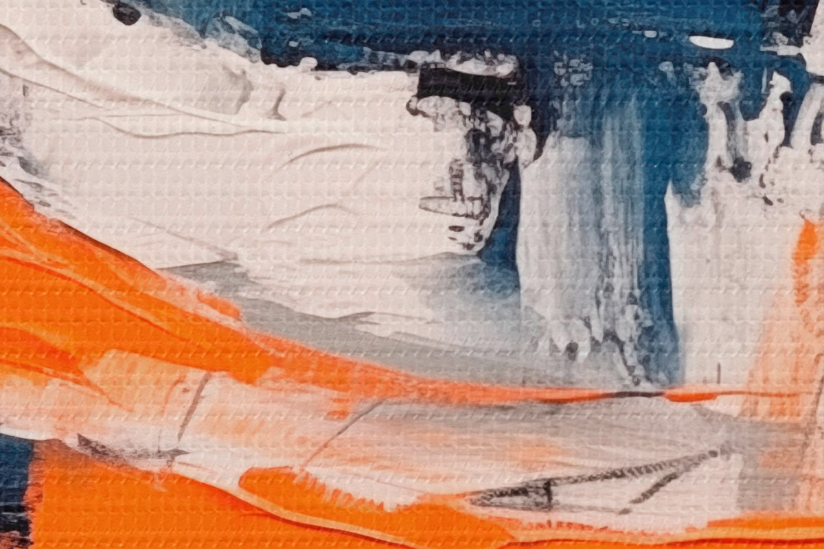 Attēls Abstrakta kompozīcija ar spilgti oranžiem un ziliem akcentiem Nr r42482